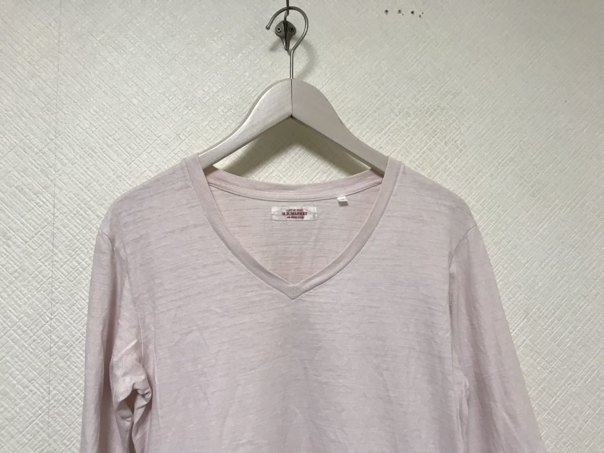 商品名:本物ハリウッドランチマーケットHRMコットンVネック7部丈長袖TシャツロンTメンズサーフアメカジミリタリービジネススーツピンク2M日本製