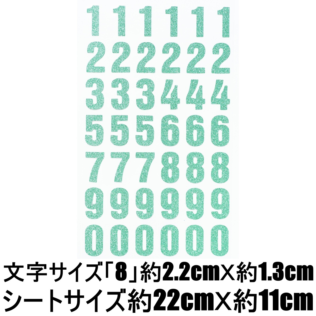 グリーンにラメ加工を施した数字のステッカーセットです。