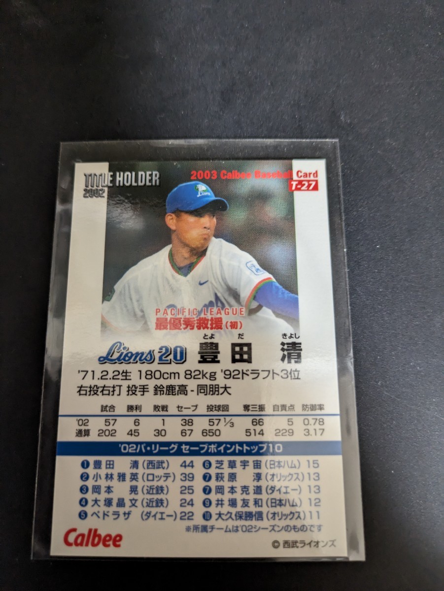 カルビー2003 西武ライオンズ 豊田清 最優秀救援投手 タイトルホルダー インサートカード