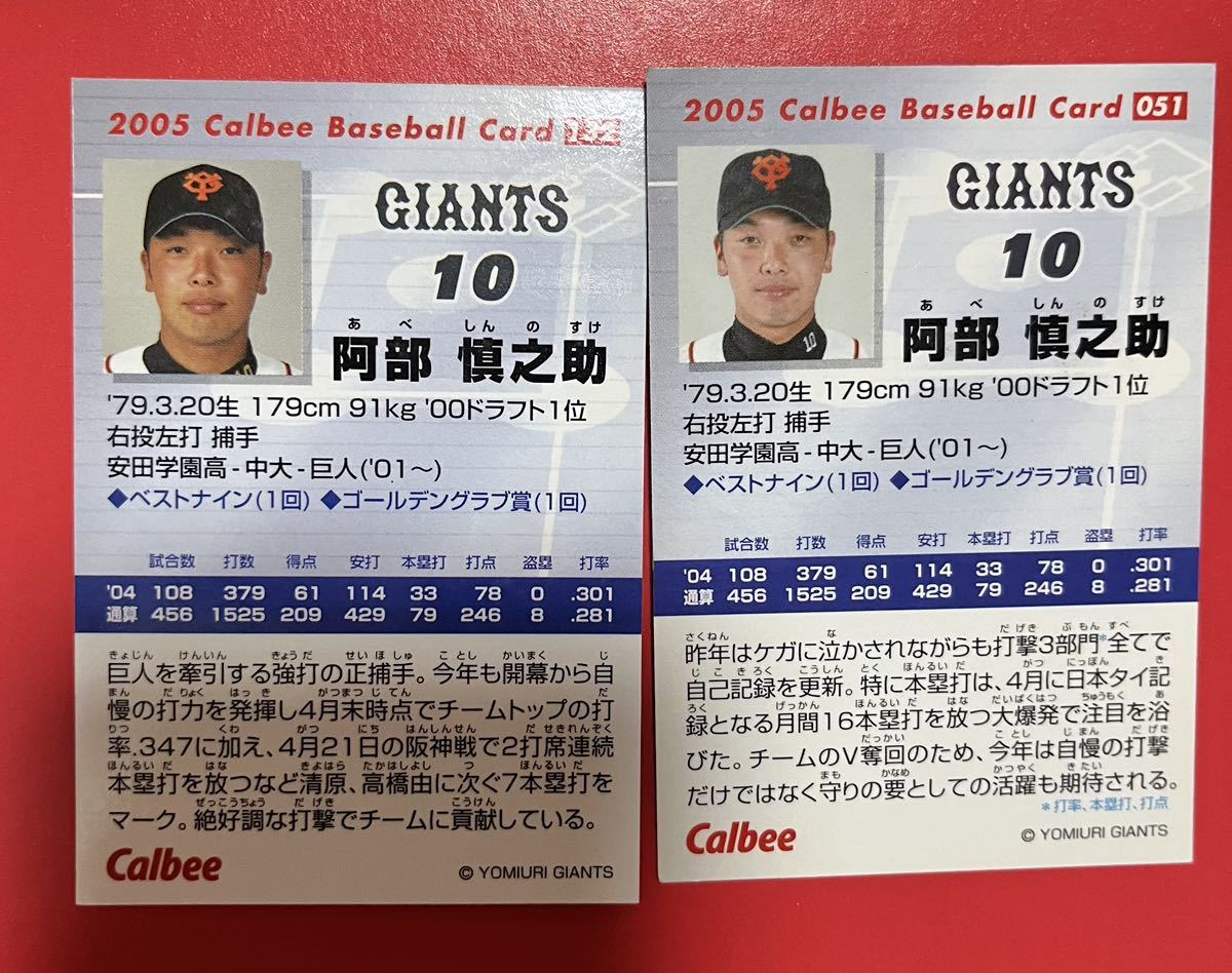 カルビー2005 プロ野球チップス トレーディングカード2枚セット 読売ジャイアンツ 阿部慎之助 巨人軍 監督就任です。