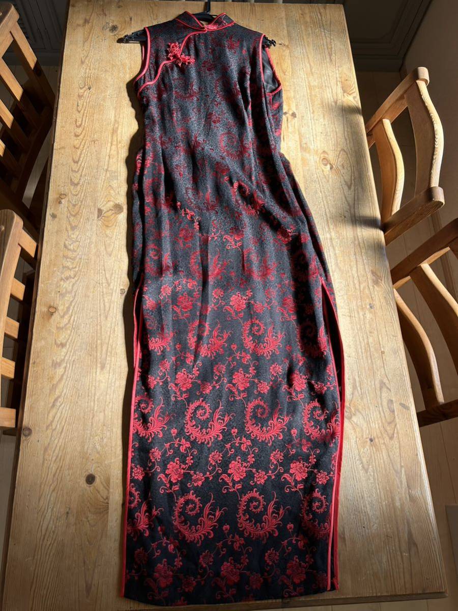 この絶妙なオーダーメイドのチャイナドレスは、女性の美しさを引き立てます。エレガントなブラック色と上質なシルク素材は、パーティーや結婚式に最適です。ノースリーブとロングドレスのデザインは、肌を美しく見せ、高貴な雰囲気を演出します。着用は1〜2回のみで、目立った傷や汚れはありません。