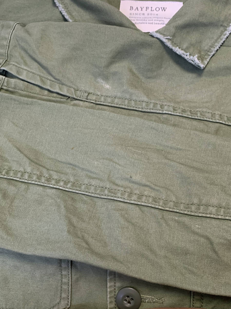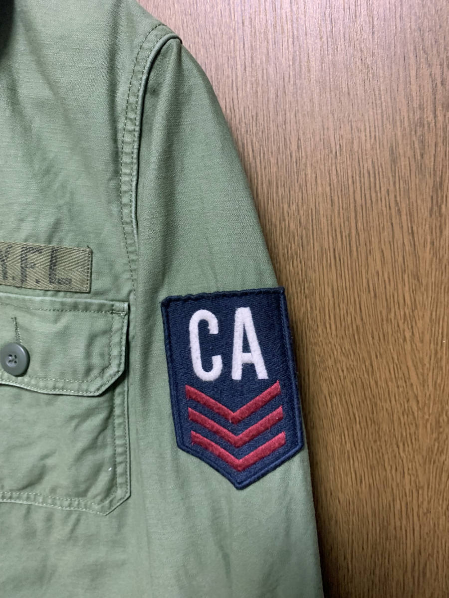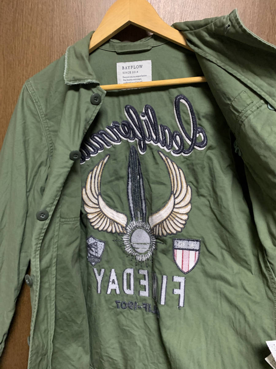 2 BAYFLOW / ベイフロー 長袖ミリタリーシャツ 刺繍 California ウイングマーク グリーン系 加工