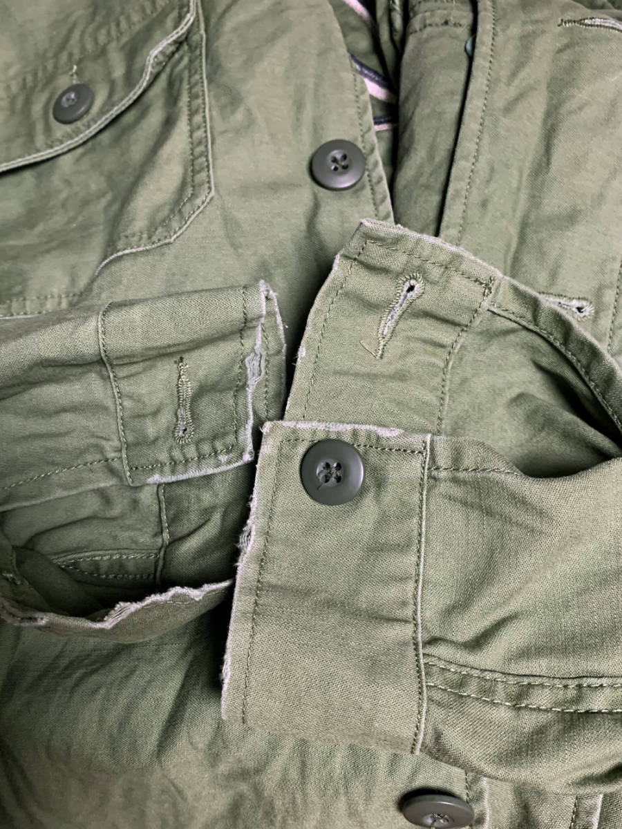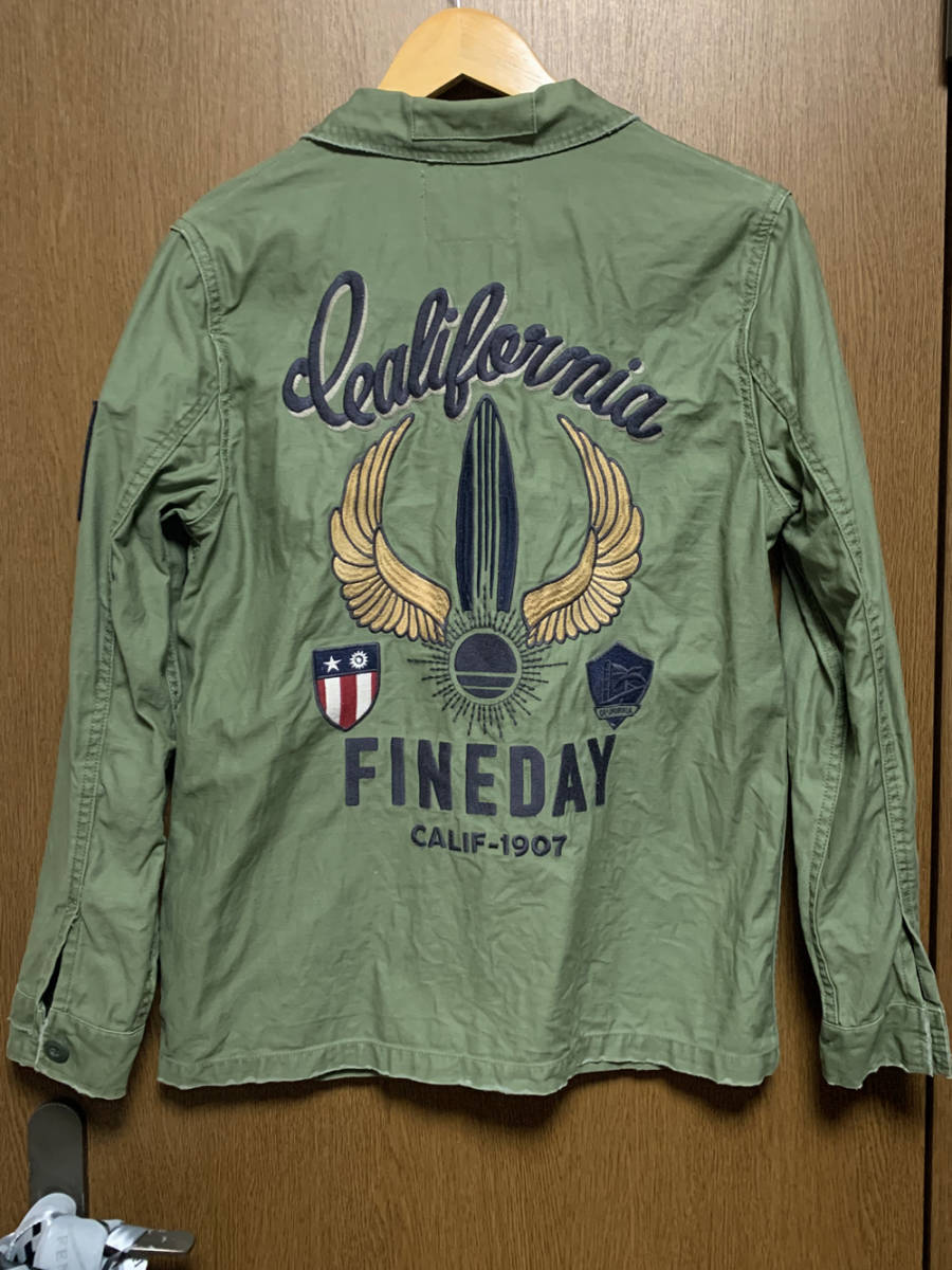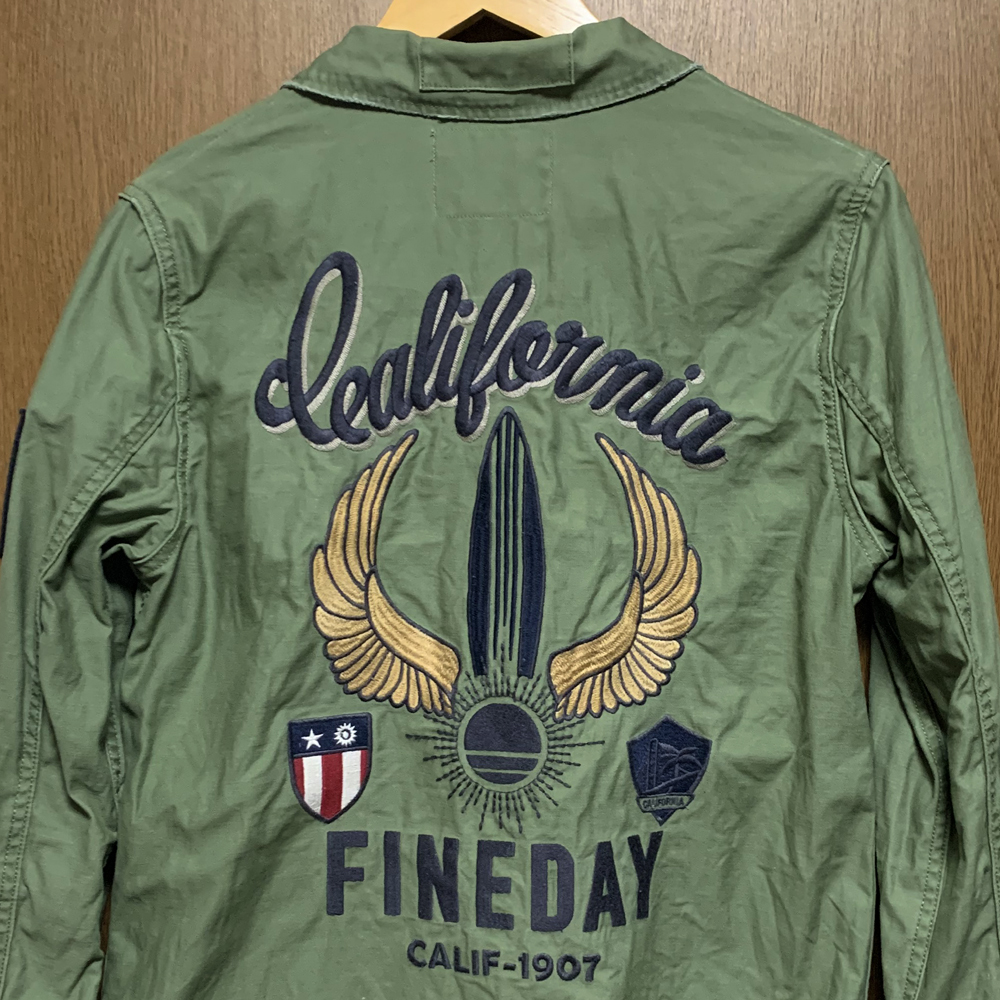 2 BAYFLOW / ベイフロー 長袖ミリタリーシャツ 刺繍 California ウイングマーク グリーン系 加工