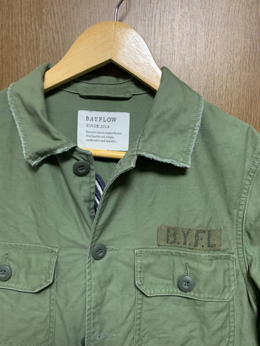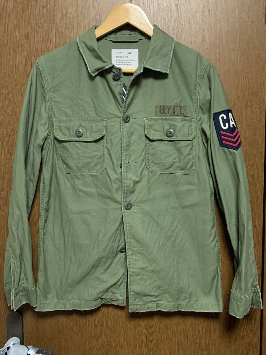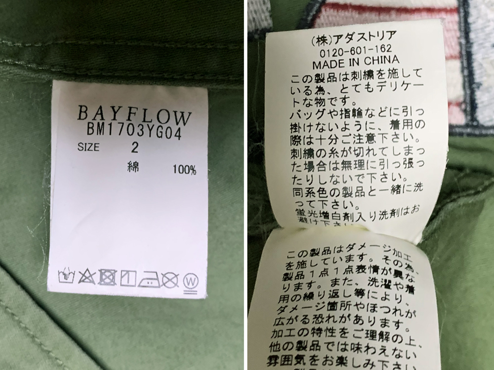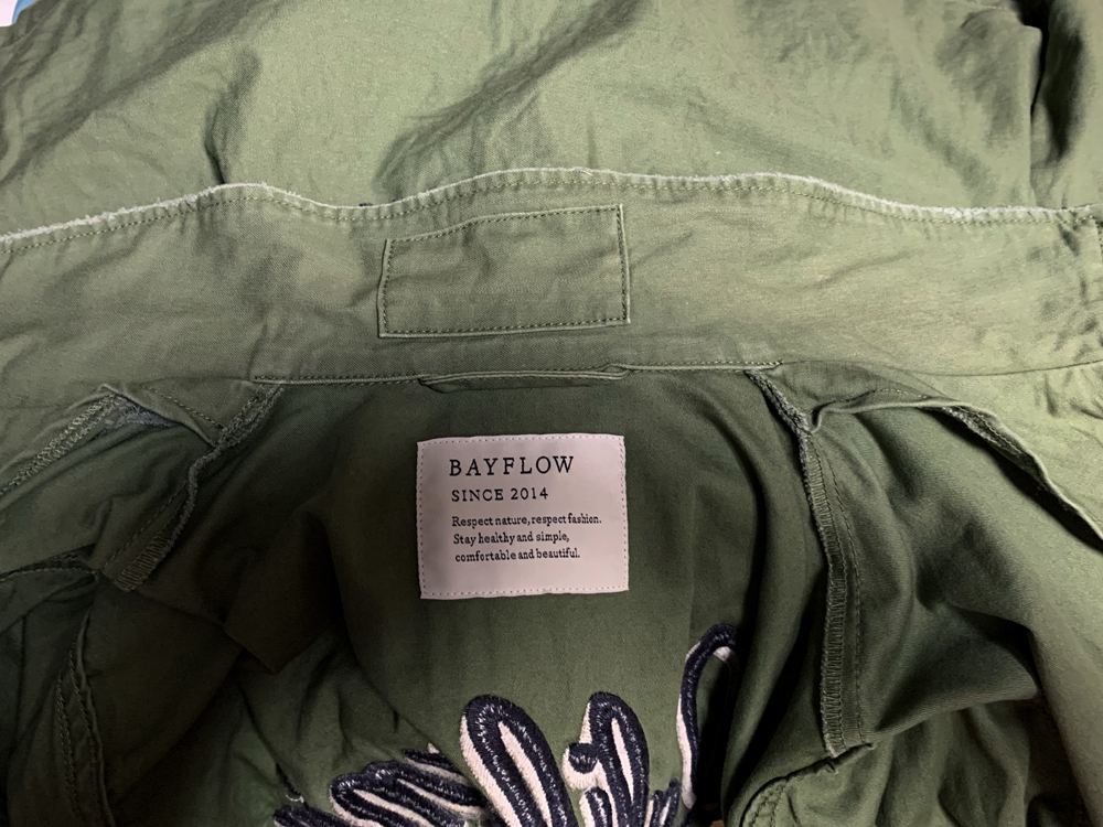 2 BAYFLOW / ベイフロー 長袖ミリタリーシャツ 刺繍 California WINGマーク グリーン系 加工
