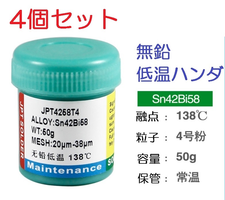 4個セット 低温 138℃ クリームはんだ 200g 無鉛 ソルダーペースト 送料無料 (液体 ペースト ハンダ リフロー ギボシ 半だ 圧着端子,