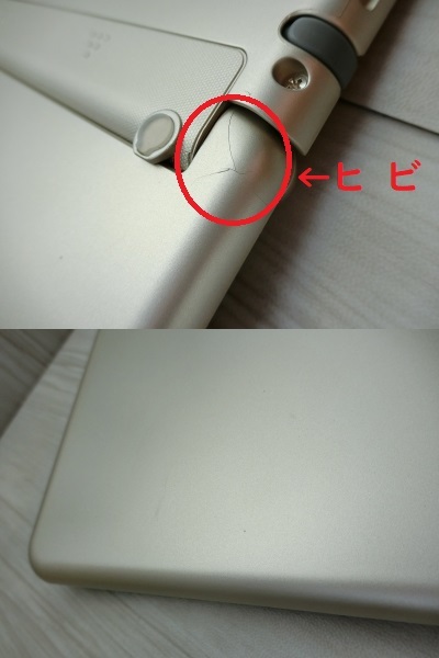 本体の外側は、上面右端部分に最大1センチ程のヒビが2ヶ所見られますが、動作に問題はありません(写真7枚目参照)。また、全体的にキズや汚れが中くらいにあります。