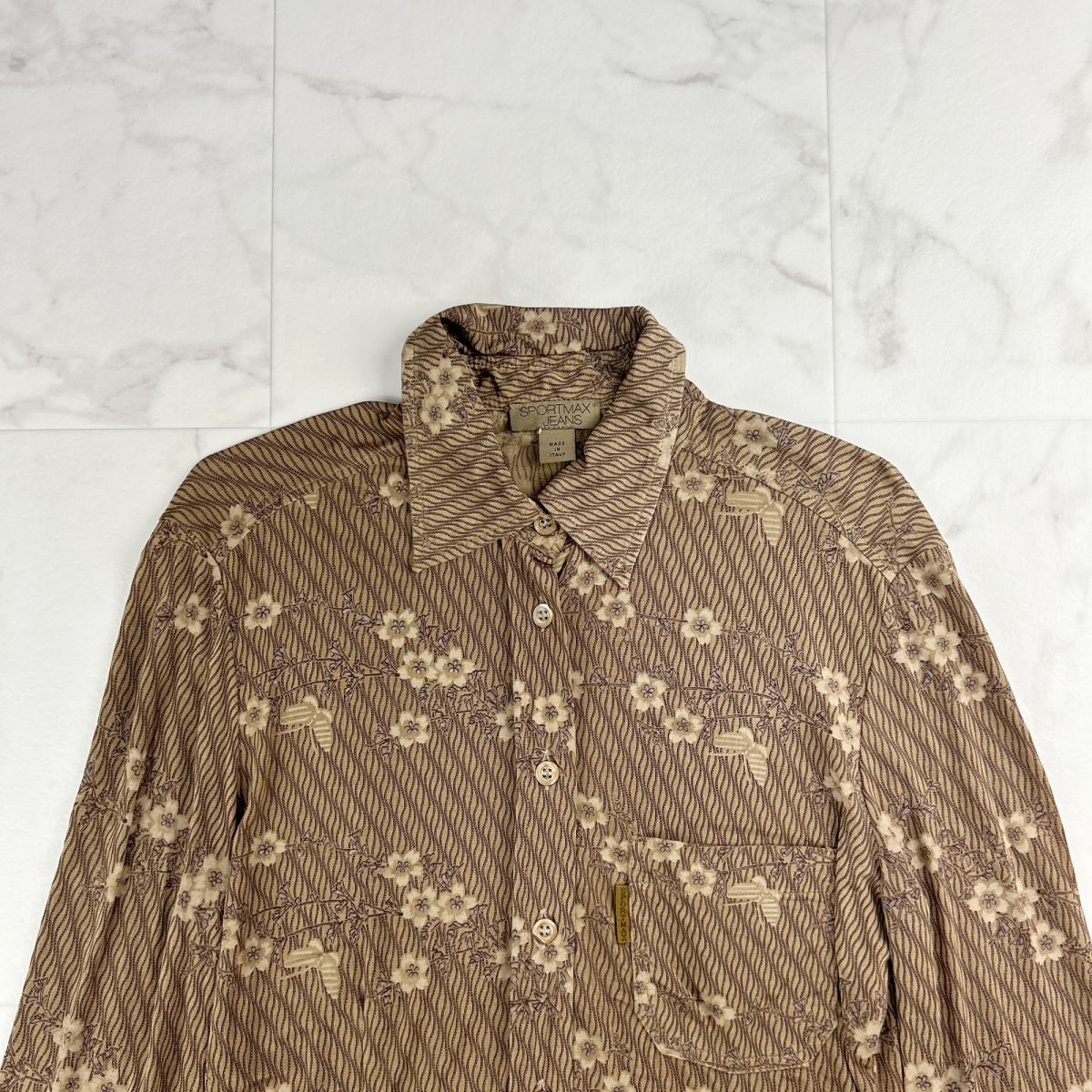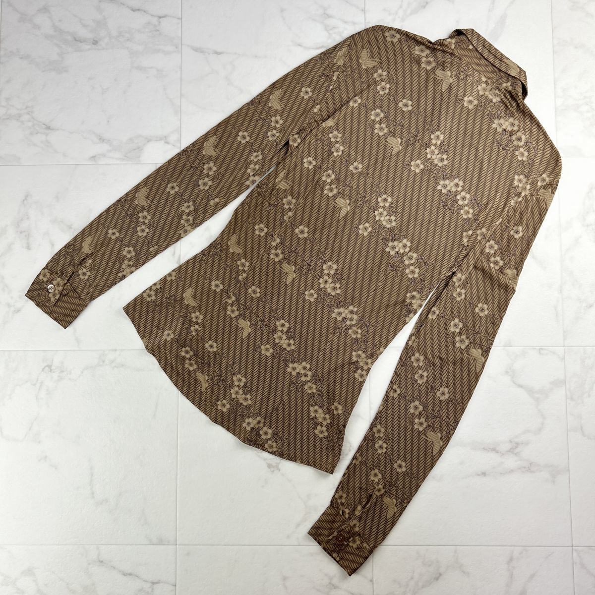 美品 SPORTMAX JEANS スポーツマックス 花柄 ストレッチ 長袖ブラウスシャツ トップス レディース 茶色 ブラウン サイズS*JC336