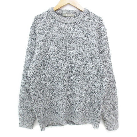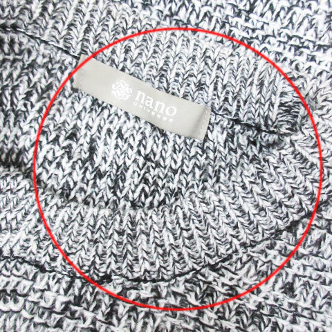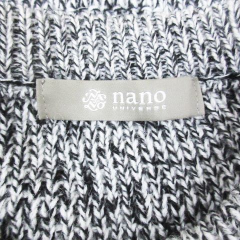 ナノユニバース nano universe ニット セーター 長袖 クルーネック 総柄 ウール混 M 白 黒 ホワイト ブラック /FF12 メンズ