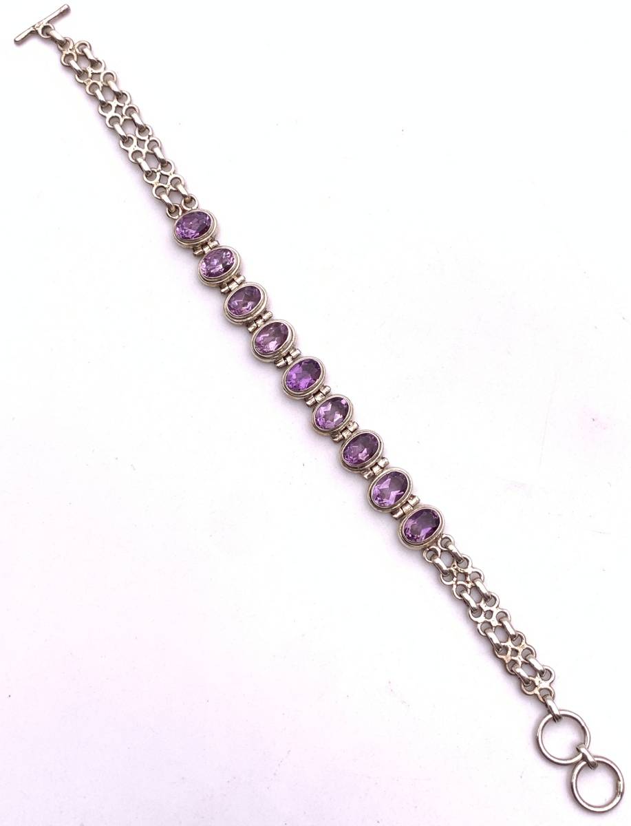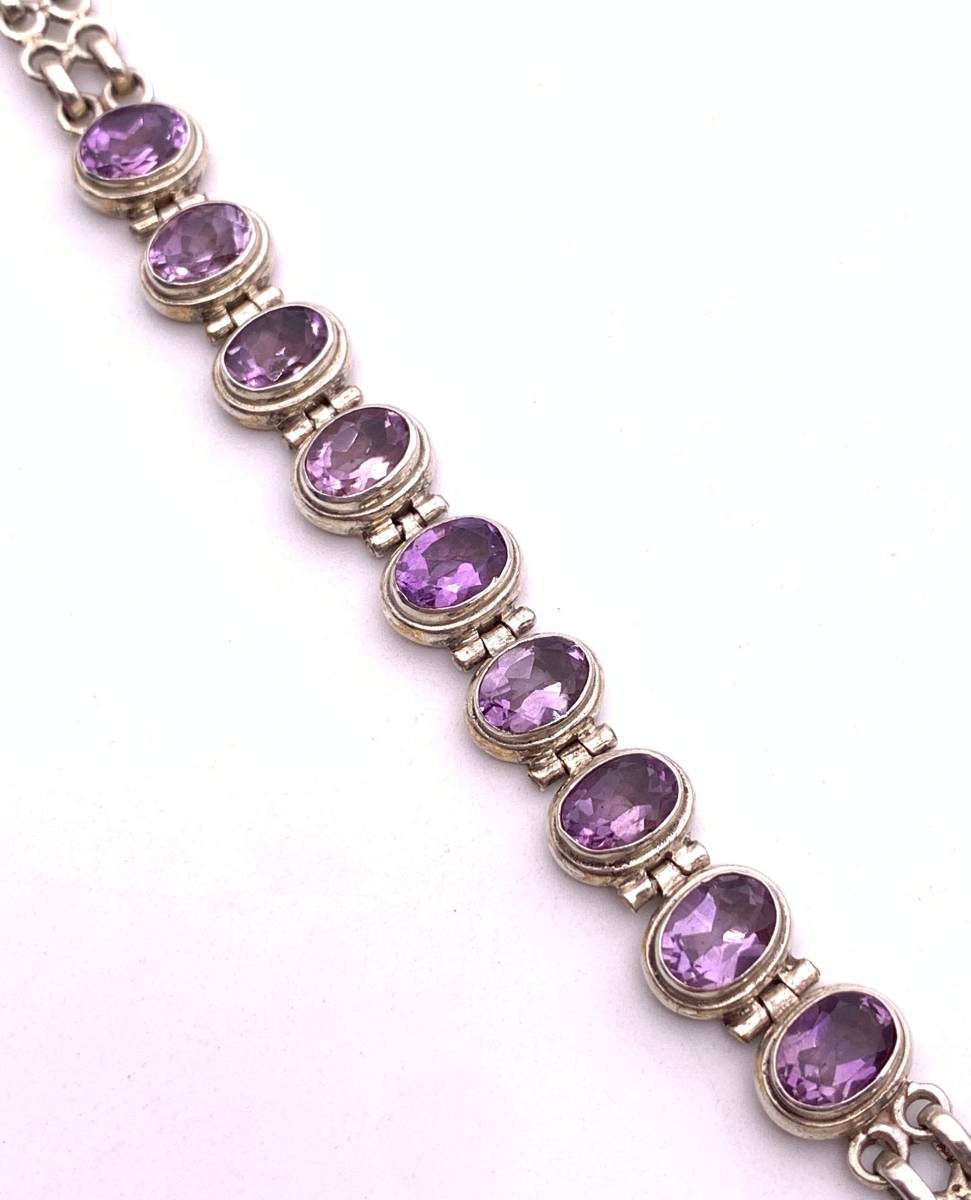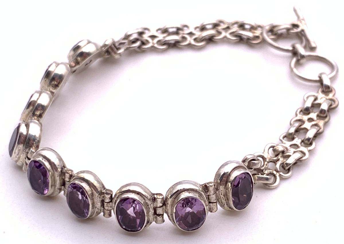天然石アメジスト(紫水晶) silver925ブレスレット-A11