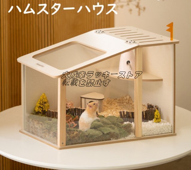 ハムスターケージ ハムスターハウス 飼育ボックス 木製 飼育かご 広い 掃除しやすい ハム小屋 大空間 プルデザイン 本体のみ販売 F213