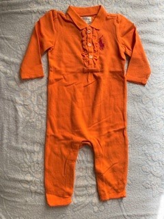着用少★ラルフローレン★カバーオール★9M/9か月★70~80cm★オレンジ・ピンクマーク★胸元おしゃれ★ポロシャツ風