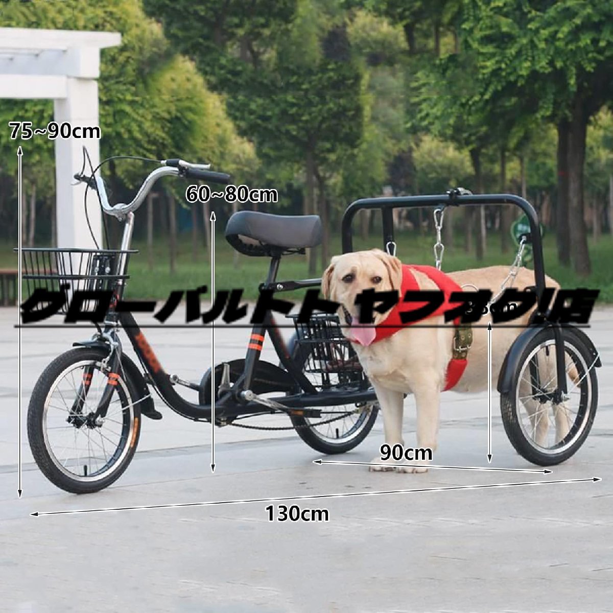 ★状態:新品未使用 名称:折りたたみ式三輪自転車(犬の散歩デザイン付) 色: 黒 三輪車の素材: 炭素鋼フレーム、アルミニウム ステンレス鋼ハンドルバー 三輪車のサイズ:三輪車の長さ:130CM、三輪車の幅:90CM、車輪の直径38CM 三輪車ハンドルから地面までの距離: 75-90CM、三輪車シートから地面までの距離: 60-80CM 重量:21kg 梱包サイズ:81*65*38cm 【ご注意】こちらの三輪車は、ピットブル等のブルドッグ(肩高75cm未満の犬)のトレーニングに適した三輪車です。 名前:犬用ハーネス 犬用ハーネス素材:布 犬用ハーネスの色:赤 ――――――――――――――――― 機能紹介: 愛犬の散歩は安全にできますか?あなたは身体能力がありますか?この犬の散歩機能付き自転車を使えば、そんな悩みも解決! 拡大および強化された炭素鋼フレーム、滑り止めのハンドルバーとペダル、デュアルブレーキ設計により、より安全で信頼性が高くなります! 人間工学に基づいた設計により、カーシートが大きくなり、厚みが増し、快適に座ることができます。バイメタルバスケットのデザイン、より実用的、アウトドアピクニック、スーパーマーケットへの行き方、公園への行き方などに適しています。 私たちの三輪車は、あなたの犬の体力を便利かつ効果的に行使するのに役立ちます!中型および大型犬の持久力とスタミナの構築に適しています。 愛犬と一緒にランニングを楽しむならトライシクルがおすすめ。三輪車の犬用ハーネスを愛犬の背中に取り付けて、愛犬と一緒に運動しましょう!