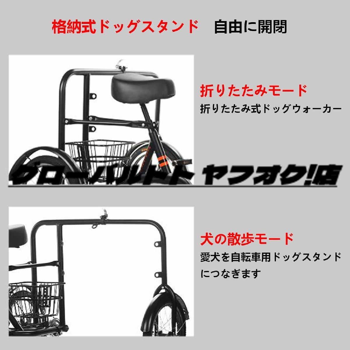 折りたたみ式三輪自転車 つの収納バスケット付きデュアルブレーキ 三輪 自転車 大人用 中型および大型犬に適した犬の散歩付き U471