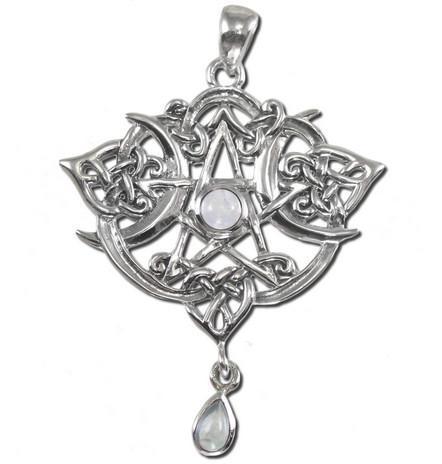 Sterling Silver Heart Pentacle Pendant with Rainbow Moonstone