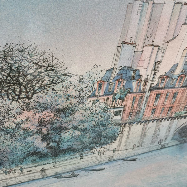 ロルフ・ラフルスキー ポンヌフ フランス リトグラフ 大型 直筆サイン入り 人気作家 額装 絵画 ◇GS-0035