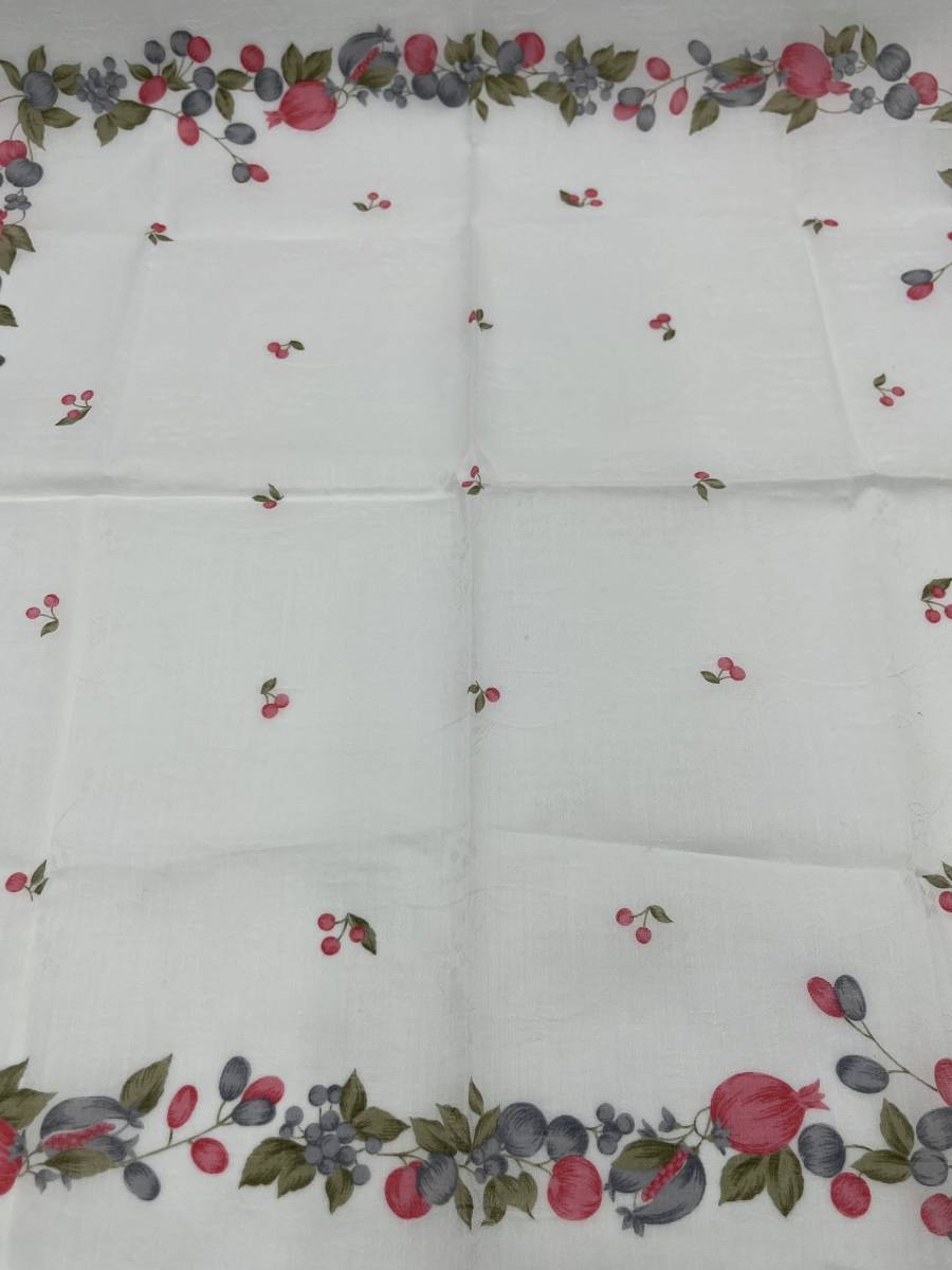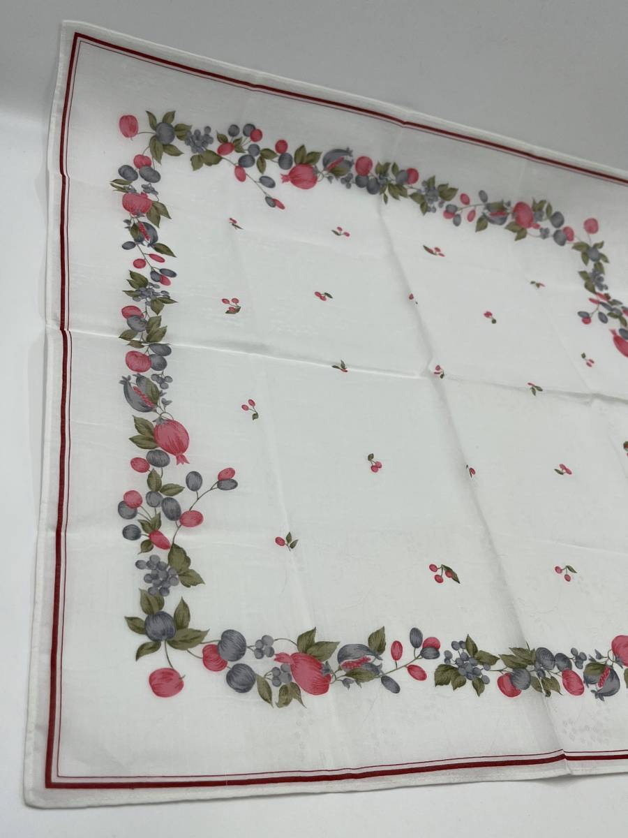 ハンカチ バンダナ ホワイト×ピンク×ブルー 木の実 透かし模様 綿 コットン100%