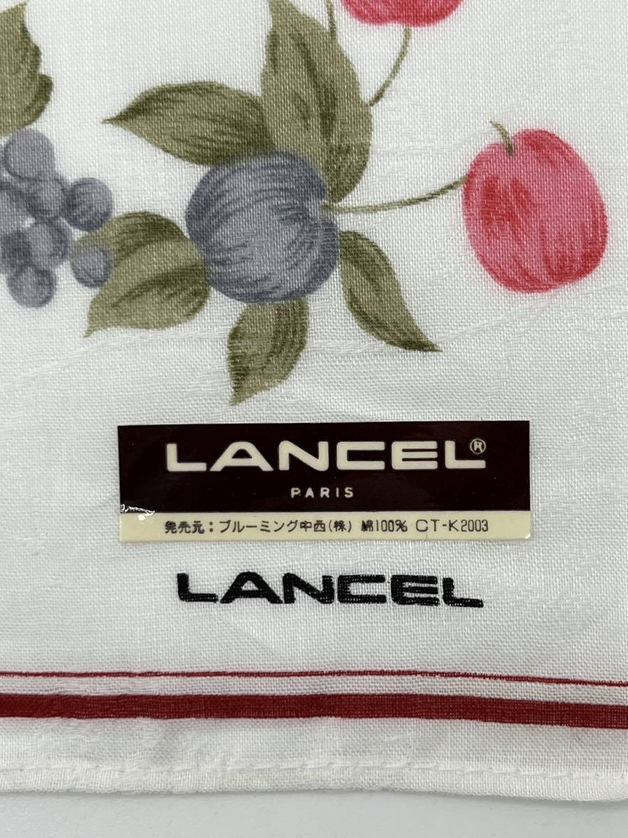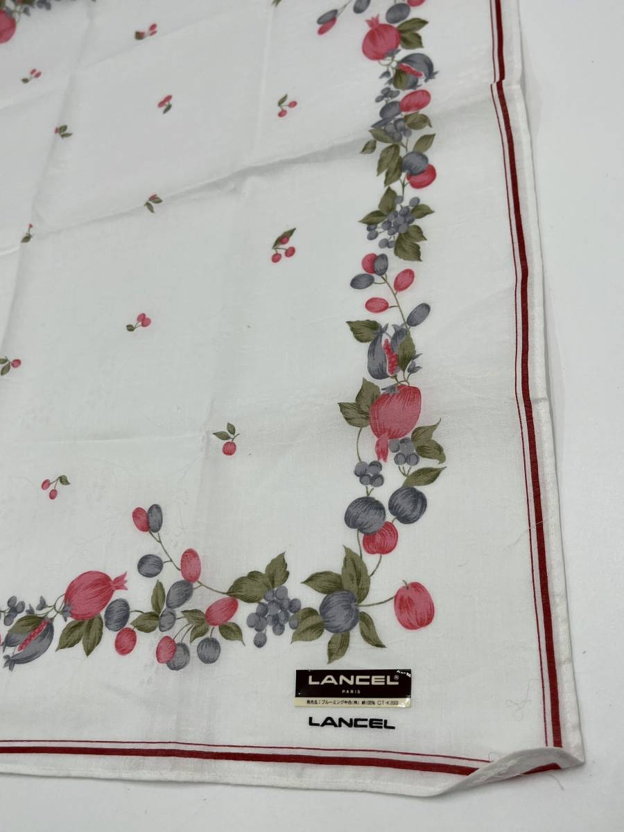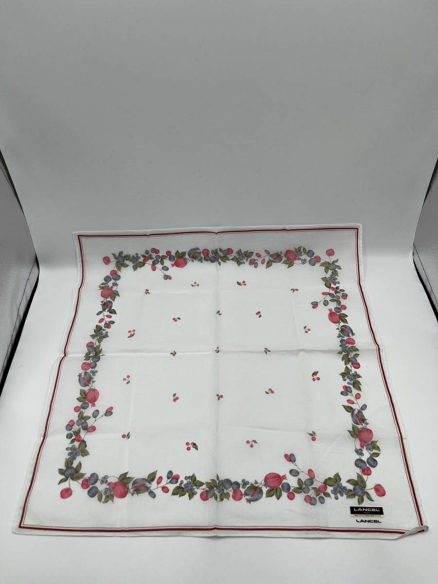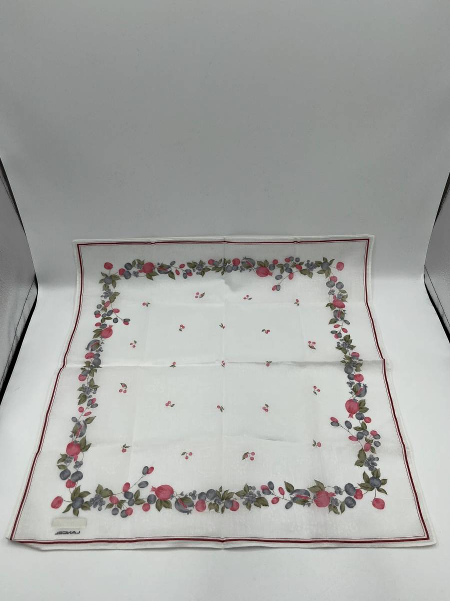 【未使用品】LANCEL ランセル ハンカチ バンダナ ホワイト×ピンク×ブルー 木の実 透かし模様 綿 コットン100% W45 H46