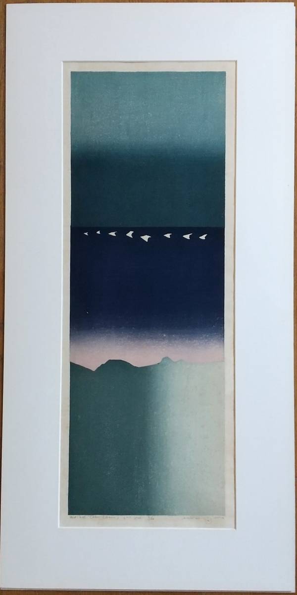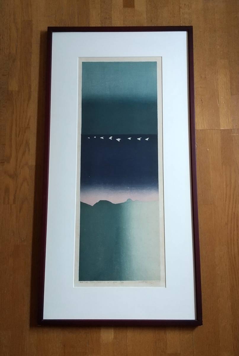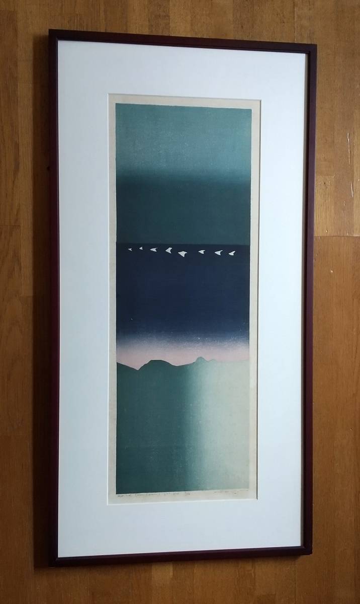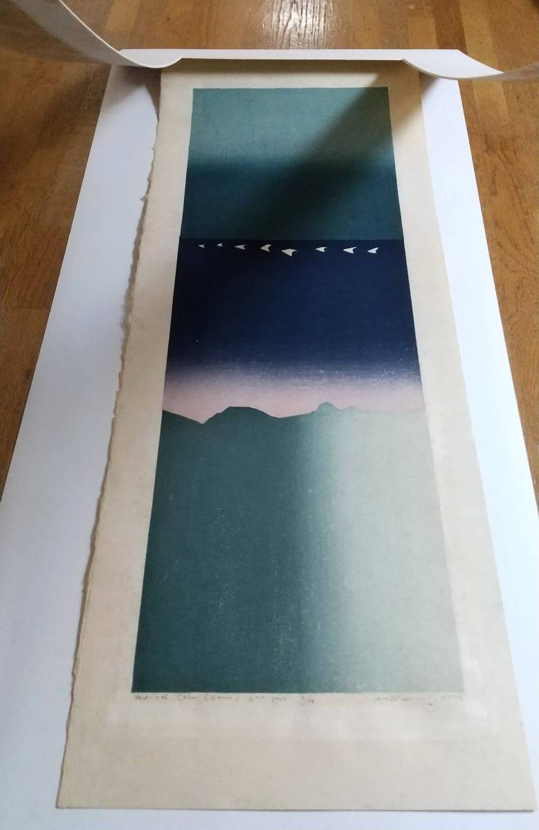 内間安セイ 『Vertical Calm (Dawn)垂直の静けさ (夜明け)』 木版 1975-76 年 直筆サイン入 限定50部 額装【真作保証】 Ansei UCHIMA