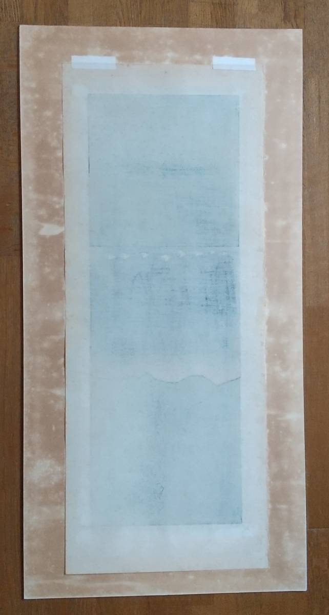 ※作品コンディション:経年によるシミがあります。特に画面右下部分が目立ちます。画像でご確認下さい。また、マット紙の裏側に焼けがあります。