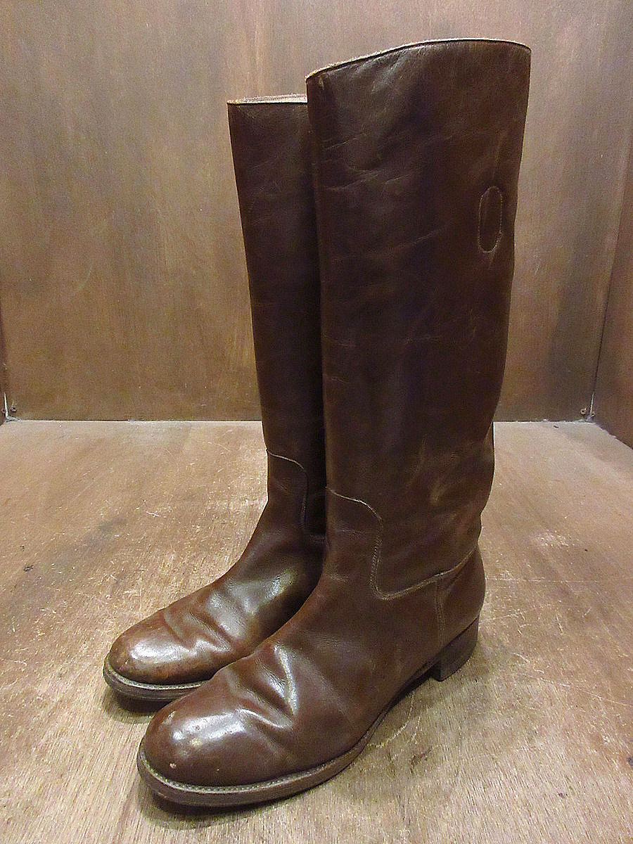 ビンテージ~40's●レディースライディングブーツ茶●231113i1-w-bt-23cmロングブーツ30sレザーブラウン乗馬ジョッキー
