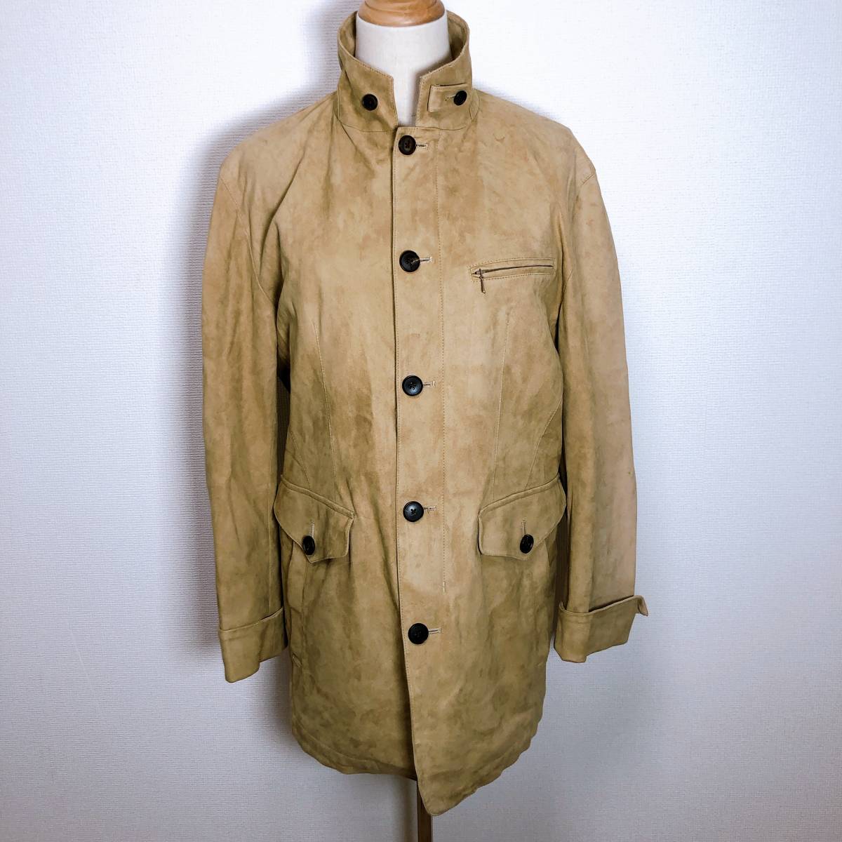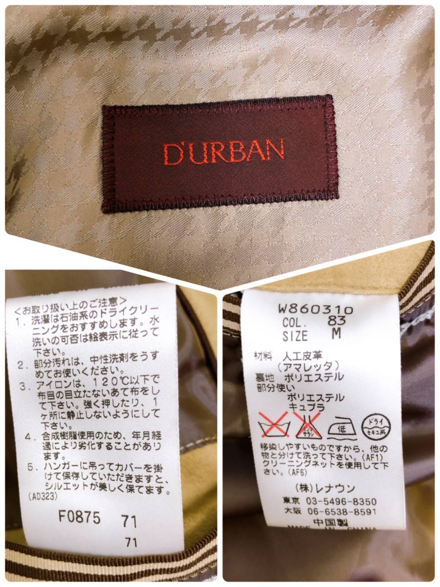 WS0360 レア D'URBAN ダーバン メンズ レザージャケット 長袖 カジュアル M ベージュ 無地 エコレザー 万能 男前 エコレザー SDGs 人工皮革