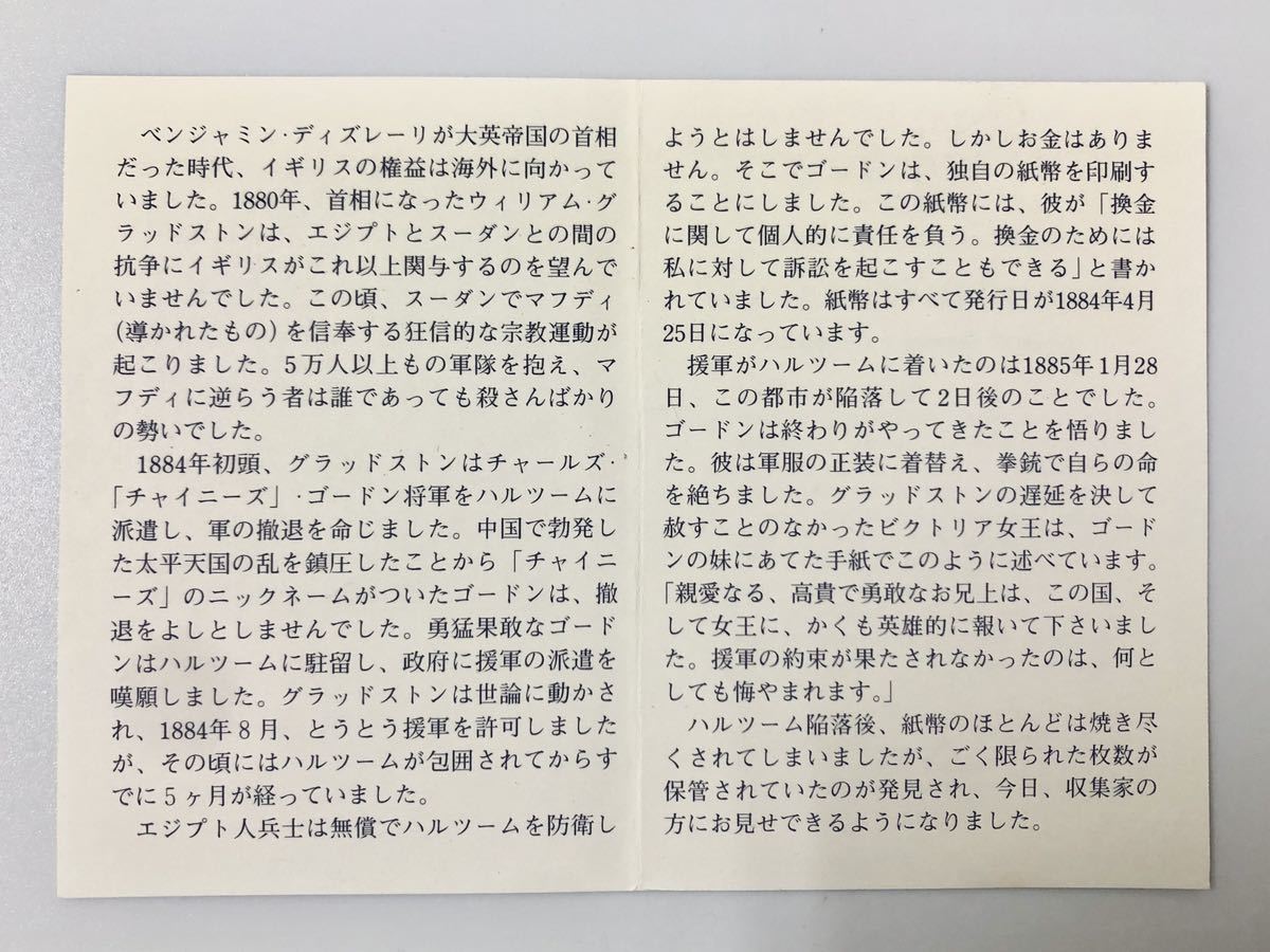 また、ゴードン将軍の手書きの署名が入っているため、まったく同じものは一枚もありません。