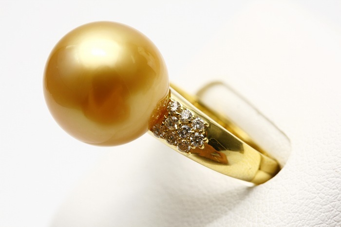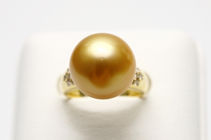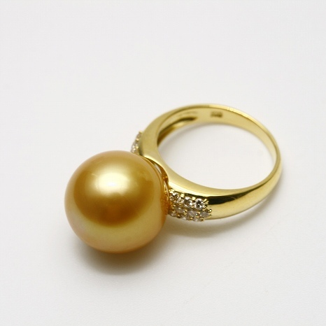 南洋白蝶ゴールデンパールリングです。 染色加工の施されていない美しいナチュラルゴールドの輝きです。 存在感抜群の13mmの大粒サイズをあしらいました。 パヴェダイヤの豪華なデザインに仕上がっています。 | |