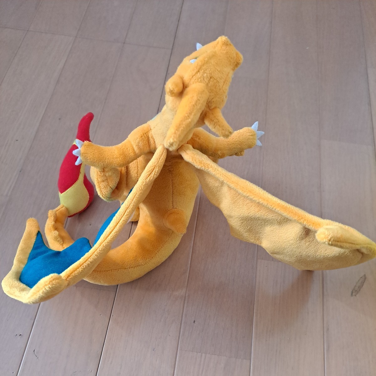 Pokmon Center【リザードン】ぬいぐるみです。翼を大きく広げて迫力あるリザードンです!見た感じ大きい汚れなどはありませんが長い間保管していた物ですのでご理解の上で入札してください。