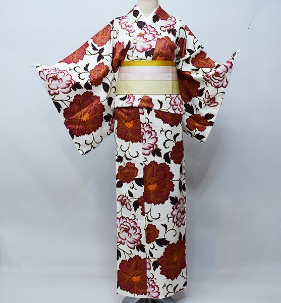 | サイズ | 身丈154cm 裄丈68cm 袖丈49cm ※適合身長142cm~156cm程度 ※着物は本来多少のサイズ違いは問題がございません。 着付けでほとんどカバーできてしまいます。 |