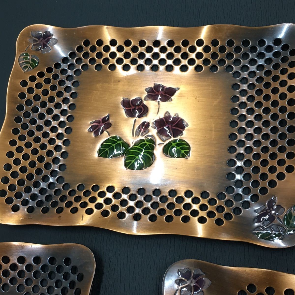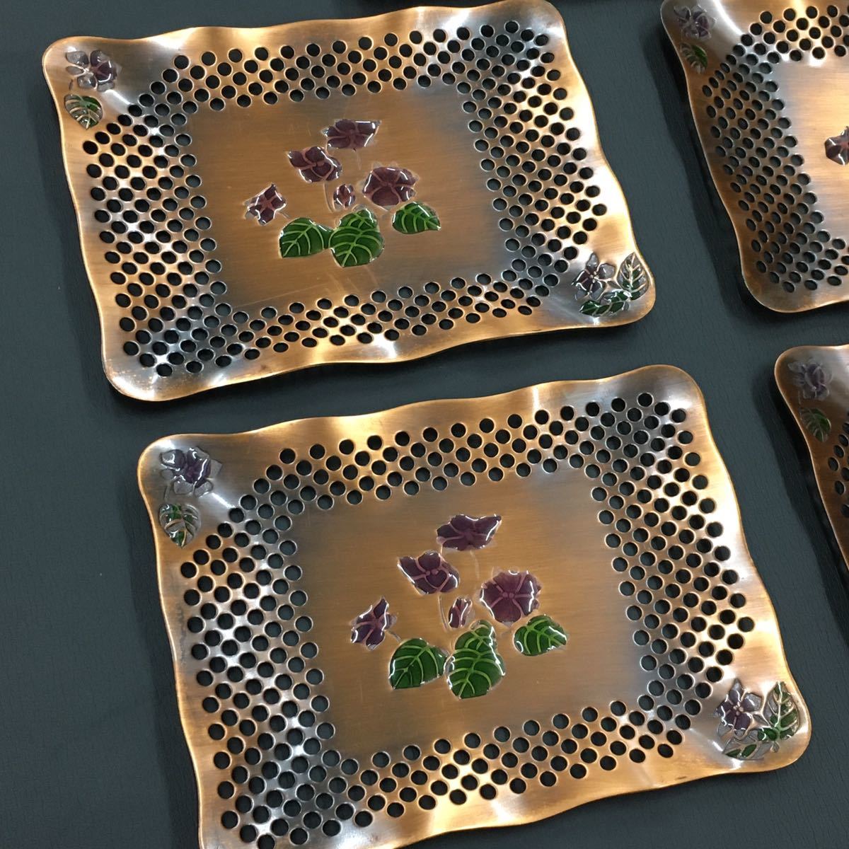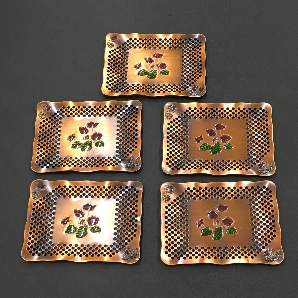 | Martian マーシャン 山茶花 純銅製 銘々皿 ブロンズ七宝仕上げ 5枚セット 10×14cm | ||||||||||||||||||
