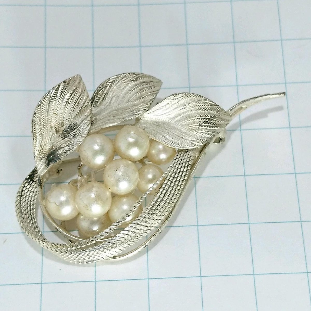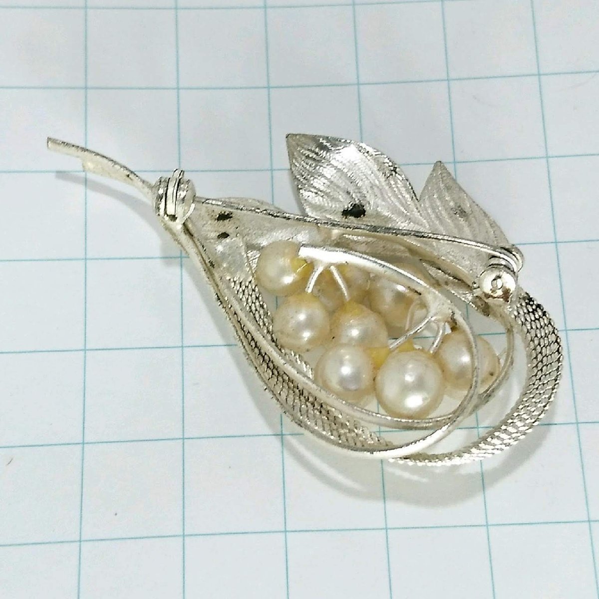 送料無料)ビンテージ☆パール 草花モチーフ☆アンティーク ブローチ A20687