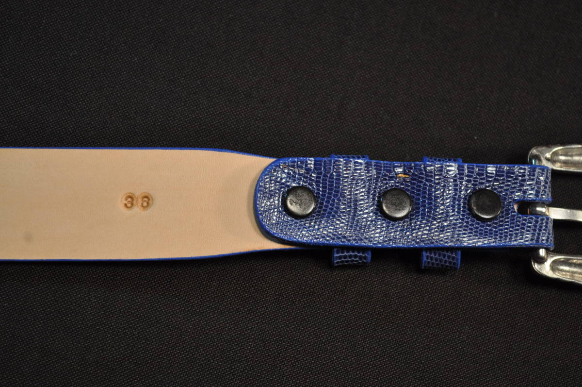 アメリカのベルト専門カスタムショップにて、今回の出品のために特注品として製作された物 他では入手できません。熟練の職人により、一点一点丁寧に制作された物 裏側には、滑りのよい、高級牛革使用 中心に芯地を貼り付け、両縁は専門の機械により、圧着し、段差を付けてあるため、外見が美しいだけではなく、裏側が剥がれる可能性が低い逸品 簡単にバックル交換可能 画像は装着の状態を示すもので、バックルは付属しません。表革は、その動物の生態のため、自然に付いた傷跡等、微小な紋様があることがありますが、味としてお楽しみ下さい。USサイズ32ー全長100cm 穴77-87cmに5穴 34-105cm 82-92 36-110cm 87-97 38-115cm 92-102 40-120m 97-107 上記理由により、あらゆる条件で不具合が発生する可能性があります。完品を求める方、受領後あれこれ細かい不具合を指摘しないと気がすまないような人、不具合があるとすぐに出品者があたかも不良品を送ったのごとく疑う性格の人の入札は断固お断り 入札取り消し依頼お断り ノークレームノーリターンにてお願いします。(送料金額及び発送方法についての交渉、希望指定はできかねます) 必ず、落札した商品の寸法に合う郵便受けの確保願います。受け入れられない場合の返送には一切関知しません。以下の方は入札お断り 当方が判定:出品欄記載事項熟読しない方 日本語が正しく使えない方 日本の常識礼儀を理解しない方 状態に関して神経質な方 細かい交信確認をしないと心配な方 必要以上の情報の記載、要求をする方(特に業者) 以下の方は問答無用で落札者都合で削除:次点の落札者がいらっしゃる場合、落札後24時間以内に連絡無いまたは48時間以内にお支払い無い方。取引ナビ以外での取引を求める方。落札後に商品の質問交渉をする方(特に住所氏名を名乗らずにする)。初交信で連絡先を記載されない方。出品覧に明記してあるにも関わらず送料、合計金額の確認を求める方。評価の悪い方。評価欄に品位の無い文章で誹謗中傷を書いている方。その他常識礼儀に欠ける方 落札日近くの質問、及び愚問には回答いたしません。領収書の発行はしません。発送番号通知は致しません。(遅延事故の際はこの限りではありません。)