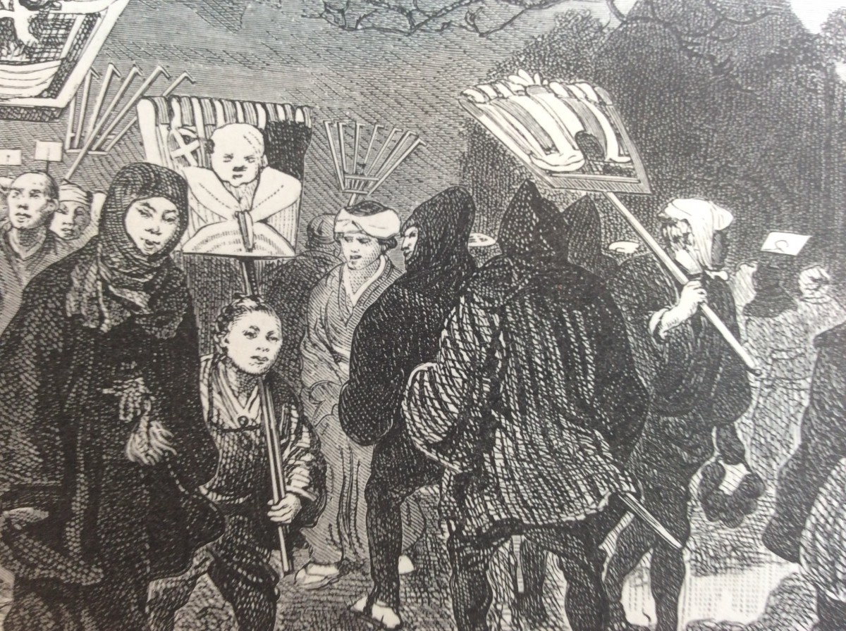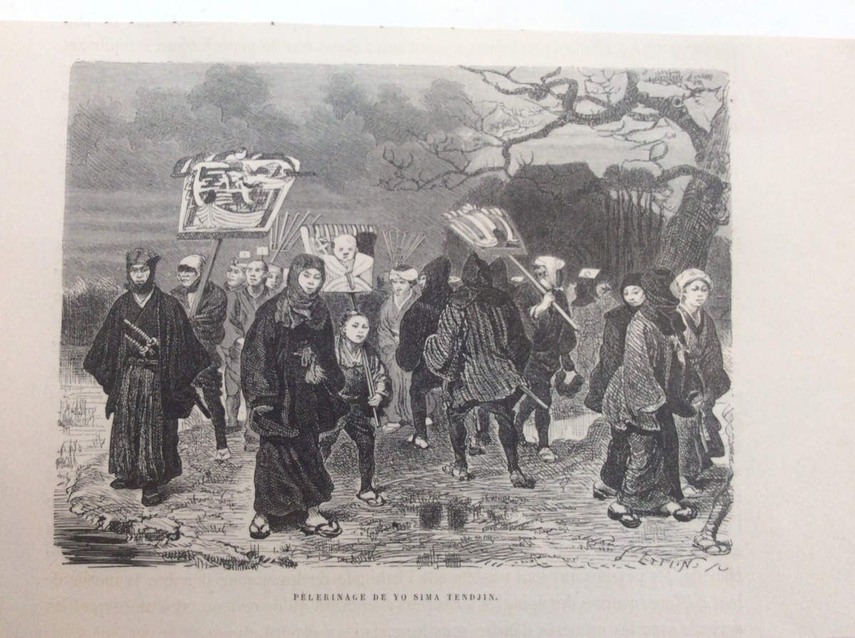 1863年に、来日し、日本滞在中、当時の日本の風景や風俗習慣を記録し、帰国後1870年にパリのアシェット社から出版された稀覯本 幕末日本絵図に収められた木版画です。