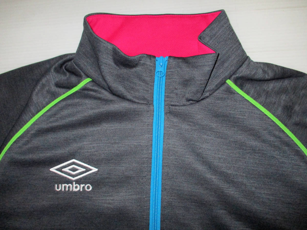 umbro アンブロ ジャージジャケット サイズ(胸囲100、身長180)です。株式会社デサントの正規品です。 素材はポリエステル100です。色は濃い目のグレー系でしょうか?色は画像でご判断くださいです。