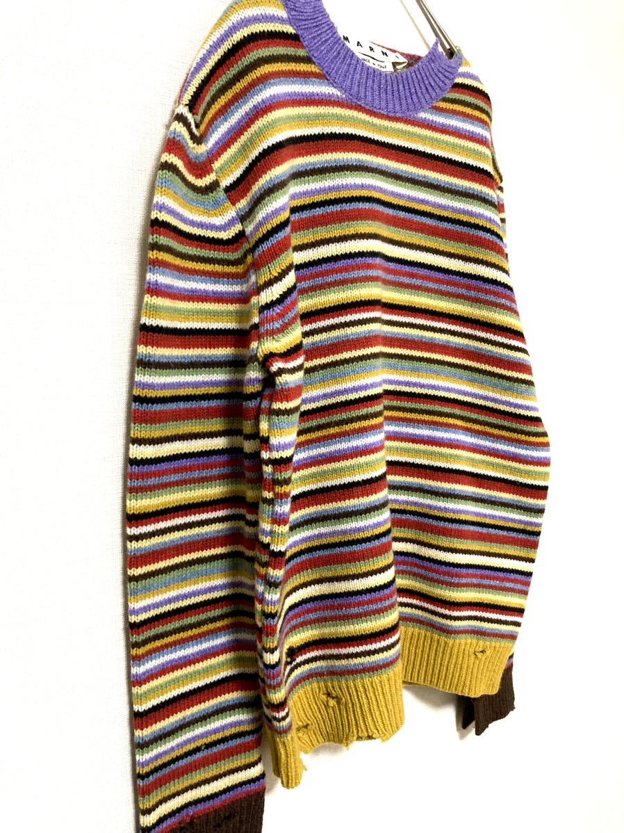 マルチカラーのボーダー柄が明るい印象で、厚みあるウールの素材感も好印象です。