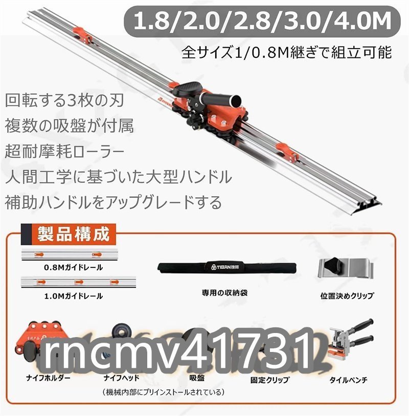 プロのタイル切断機3回転ヘッド 切断厚さ1.2cm強力な吸盤 滑り止めハンドル 大型タイルカッター専用の収納袋とタイルペンチ1.8m
