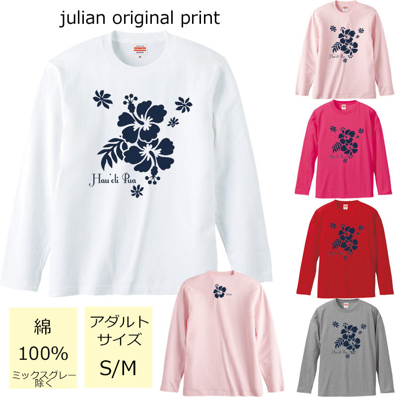 | ジュリアンオリジナルTシャツ【ハワイアンシリーズ】 程よい厚みでオールシーズン使える大定番の5.6オンスのロングスリーブTシャツ! セミコーマ糸を使用し、生地にムラの少ない光沢のある生地です。 アダルトサイズ(男女兼用サイズ)のため、レディースサイズよりゆったり着ていただけます。 プリントデザインはジュリアンオリジナルデザインになります。 普段使いでも、フラダンスのレッスン、アクティブなどの幅広いシーンにお使いできます。 | |||