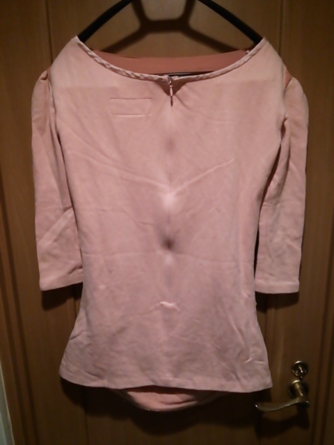 薄いピンクのスウェット地に、やや濃いめのピンクのシルクパネル、厚すぎない程よい厚みのコットンの素材感、裏パイル、バックジップ、裾にかけフレアスタイル。