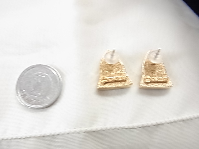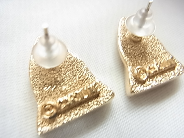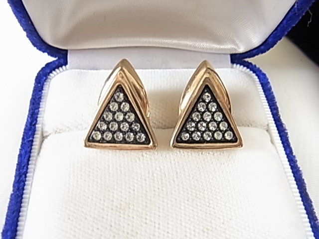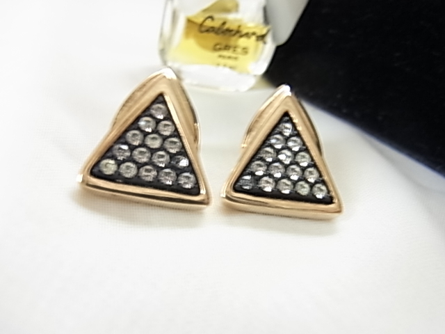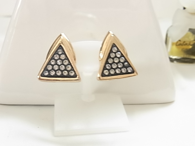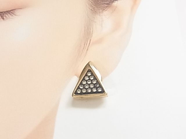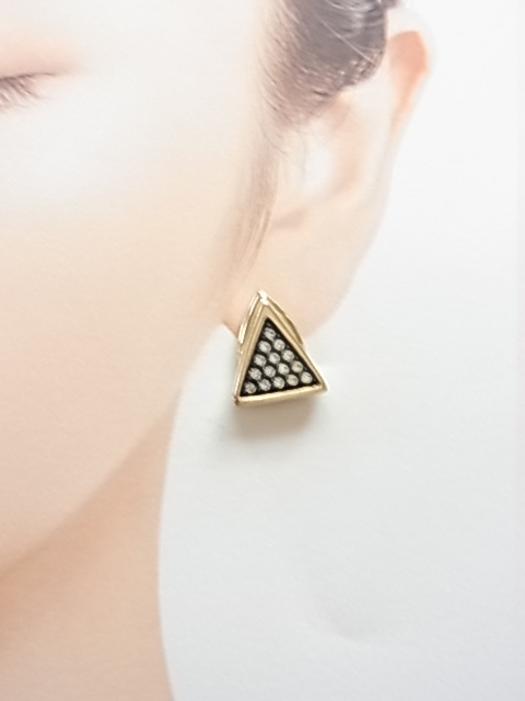 CAROLINE刻印 三角形モチーフ 黒に小粒のラインストーンがちりばめられて綺麗に輝くビジュー 金色も綺麗 シリコンキャッチ ピアス☆