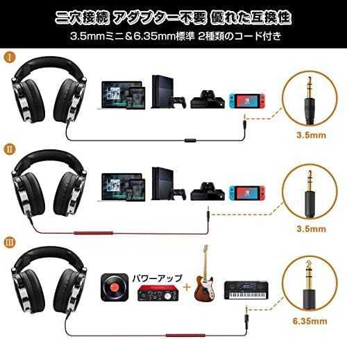 【2つの音源を同時再生可能】有線ヘッドフォンの両側に6.35mmと3.5mmのジャックを備えており、両方にケーブルを差し込むことで、2つの音源を同時に再生できます。シーンに合わせて選べる2種類の着脱ケーブルが付属されて、1台の機器のステレオ音楽を複数の人と同時に楽しむことができます。