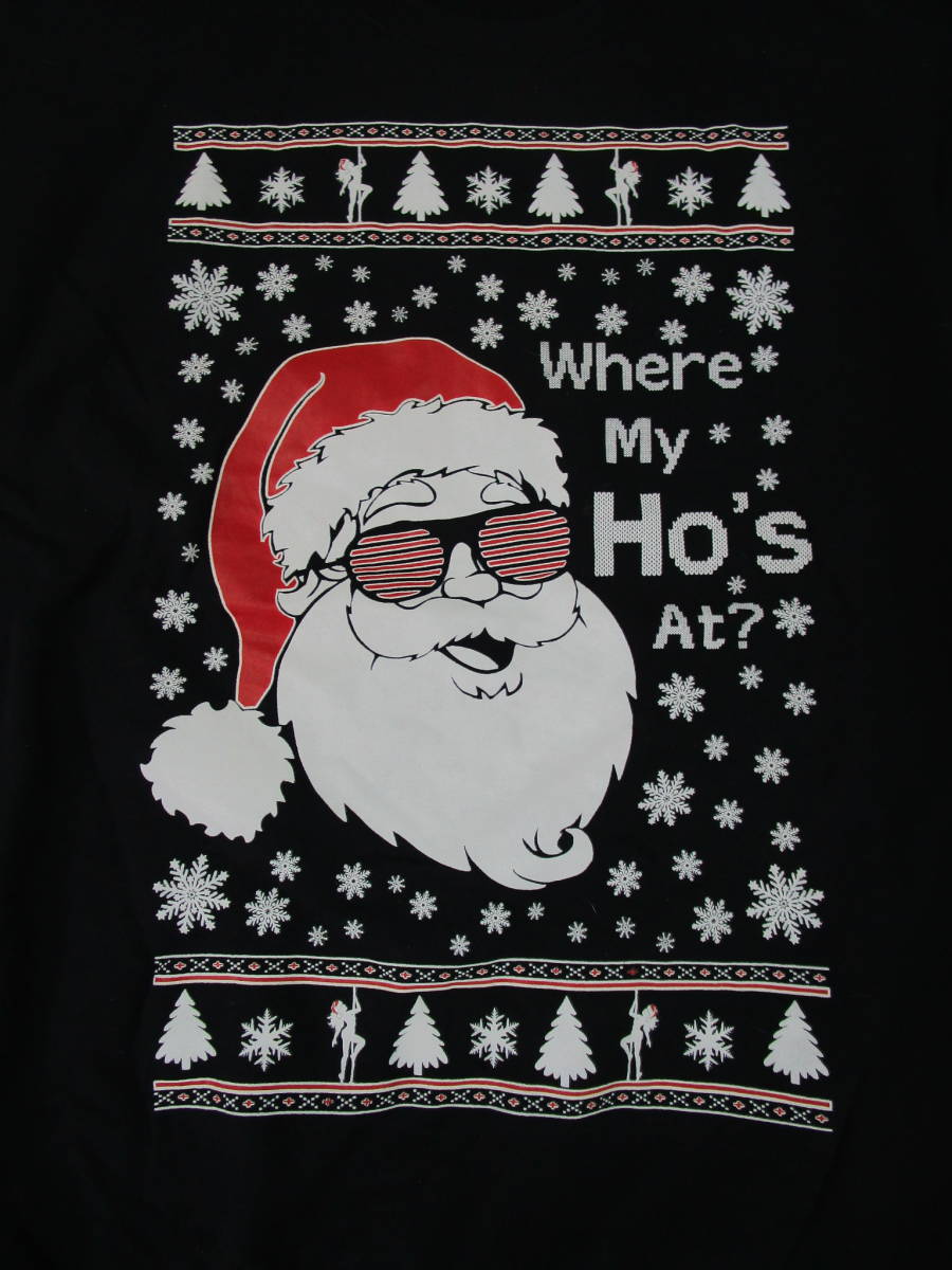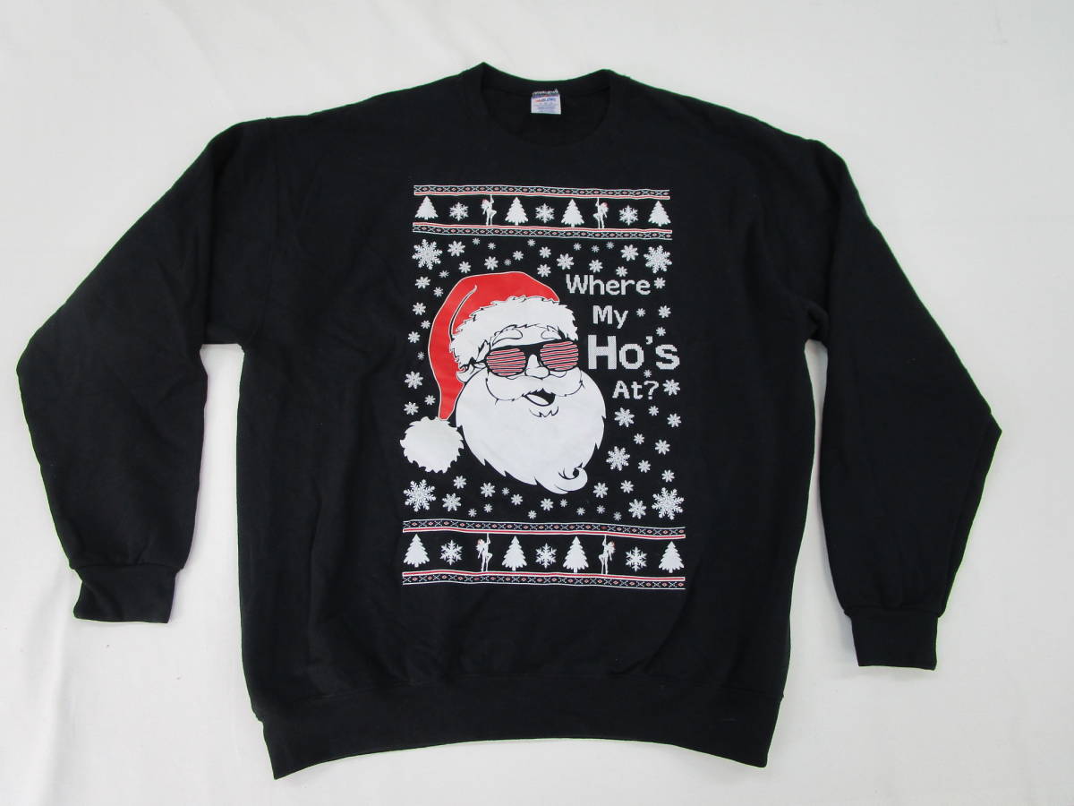 サングラスをかけたサンタクロースの絵がプリントされたクリスマス仕様のトレーナーです。