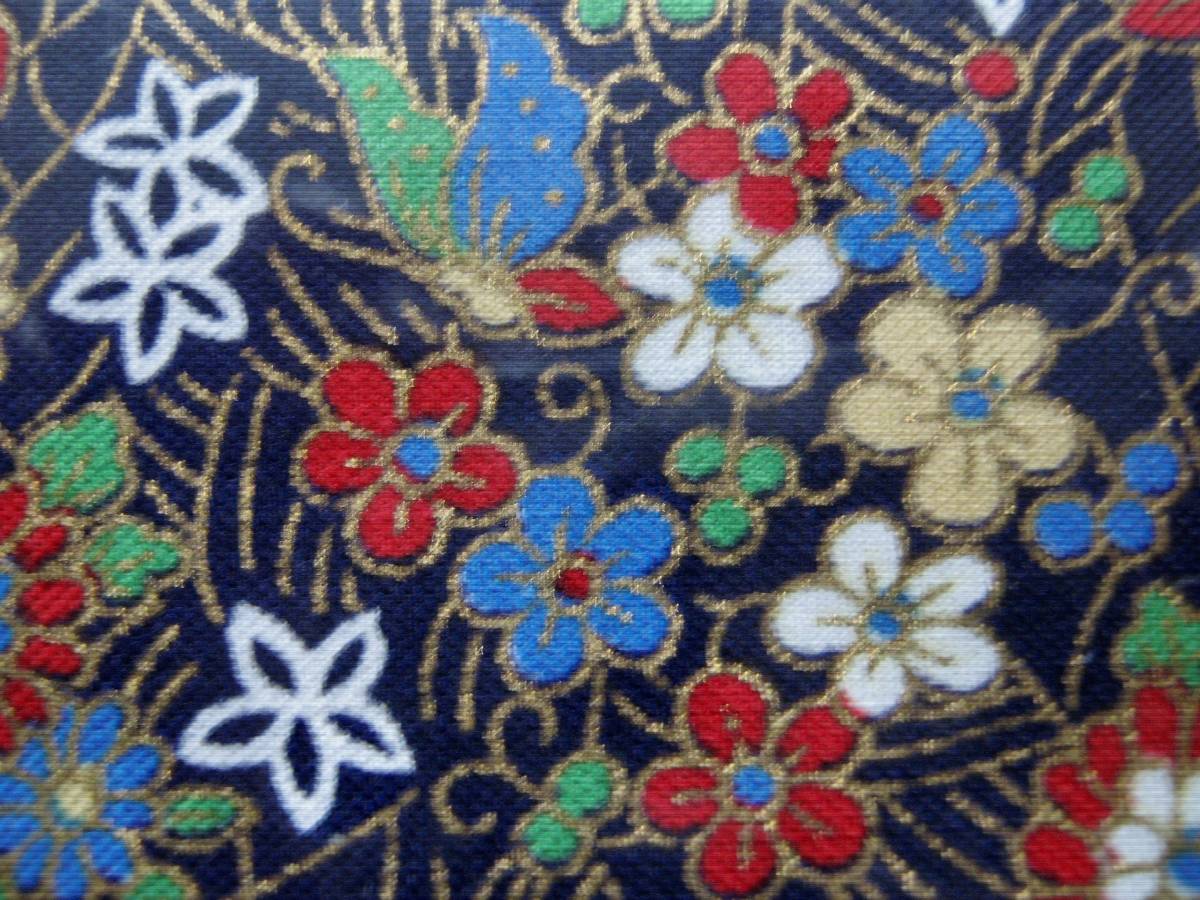 【色/柄】  生成+藍/和鈴 てまり 四季花 蝶(金彩多色)