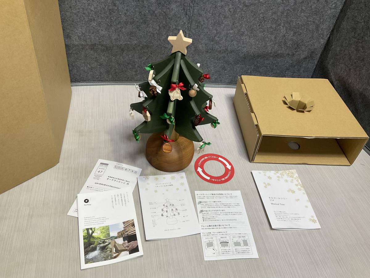 未使用の保管品綺麗! Oak Village オークヴィレッジ 木製 オルゴールツリー 30cm クリスマス クリスマスツリー 曲 赤鼻のトナカイ