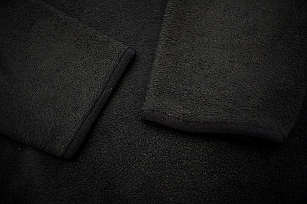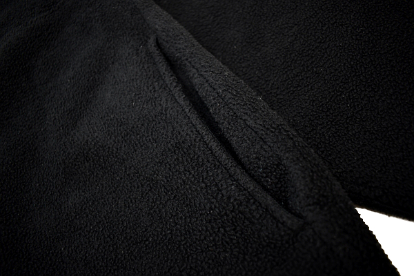 ブラックカラー フリース プルオーバー 外ポケット二個 左胸ブランドロゴ刺繍あり ハーフボタン トレーナー