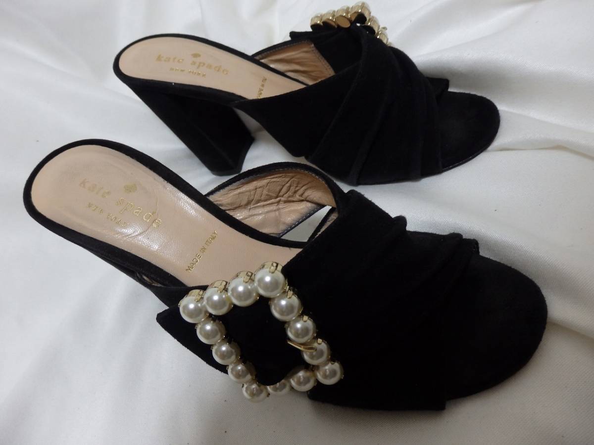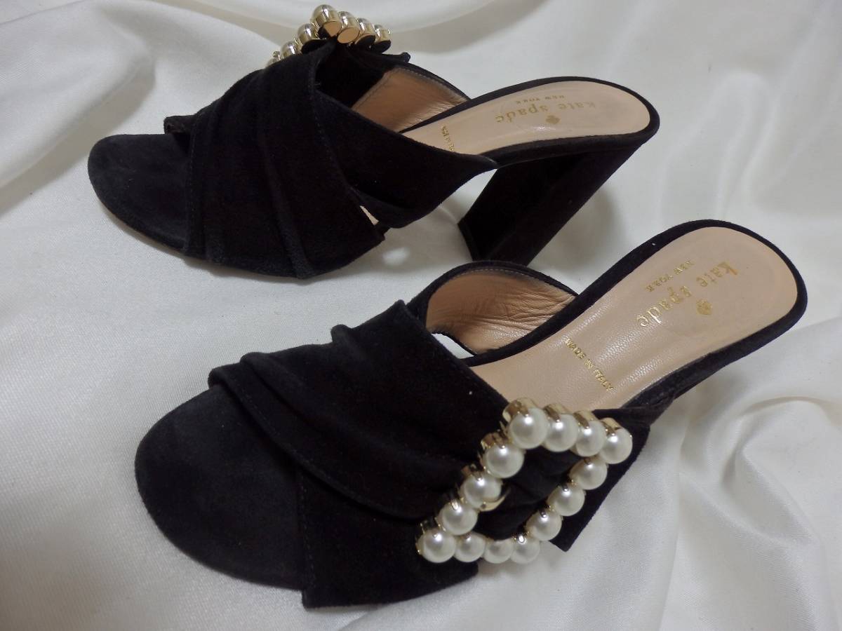 ケイトスペイド KATE SPADE ブラックスエードレザー サンダル イタリア製 6.5M表示 23㎝相当 中古 美品 激安!