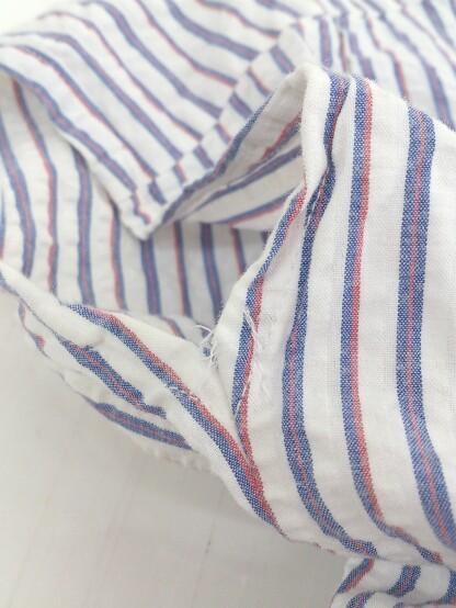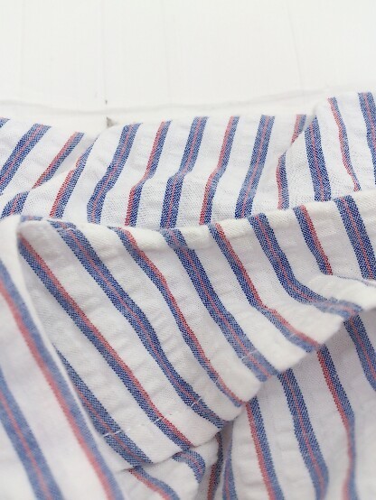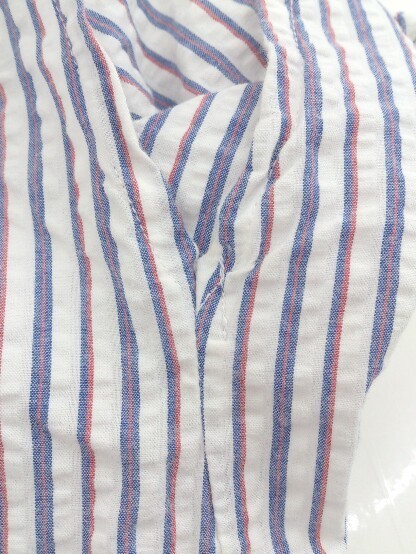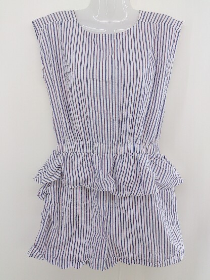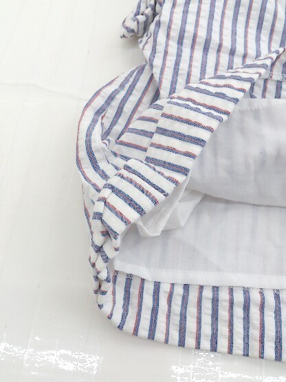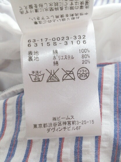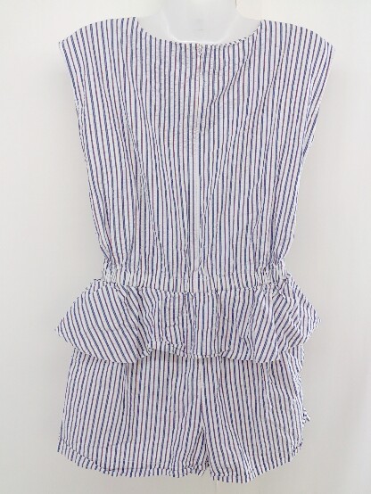 ◇ Ray BEAMS バックジップ ストライプ フレンチスリーブ オールインワン サイズ1 ホワイト ネイビー レッド レディース