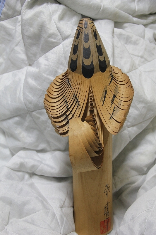 木彫 六代目 精椎 鷹の置物 高さ 約 36.8cm 検索 笹野一刀彫 お鷹ぽっぽ 観光 お土産 グッズ
