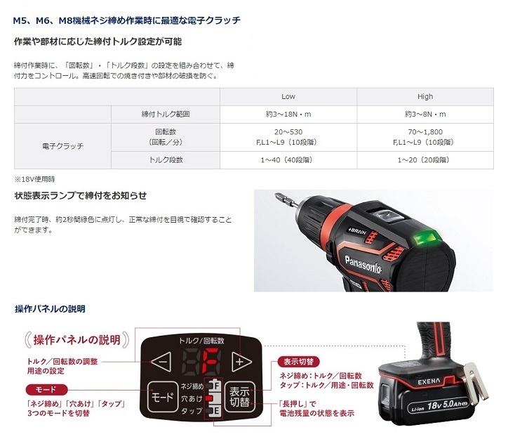 ※1、パナソニック製ドリルドライバー18Vクラスにおいて(2021年6月1日時点、パナソニック調べ)