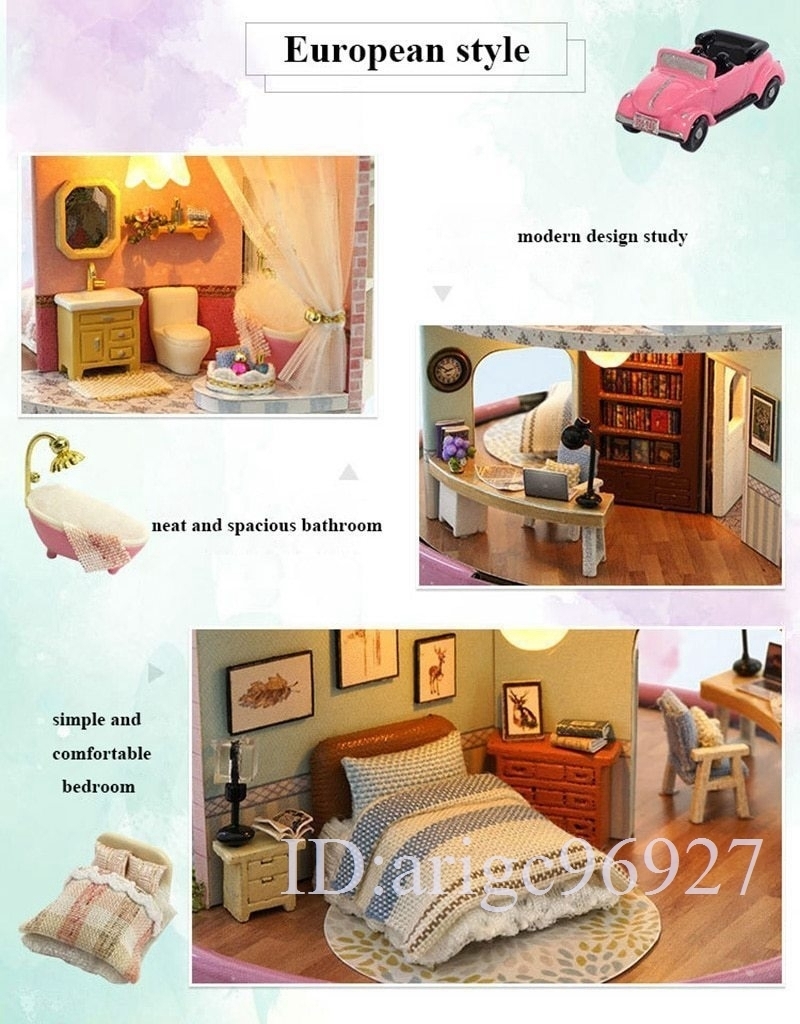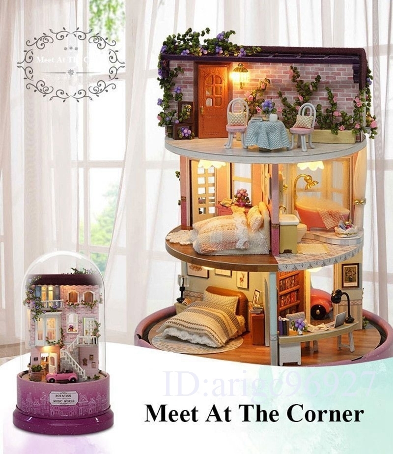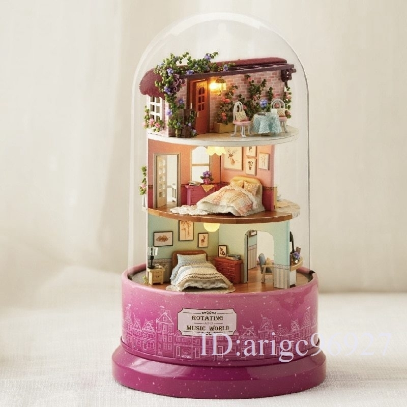 G961★DIY好きな方? かわいい回転式ドールハウス ミニチュア 手作りキット セット ドーム インテリア ラブリー ヨーロ