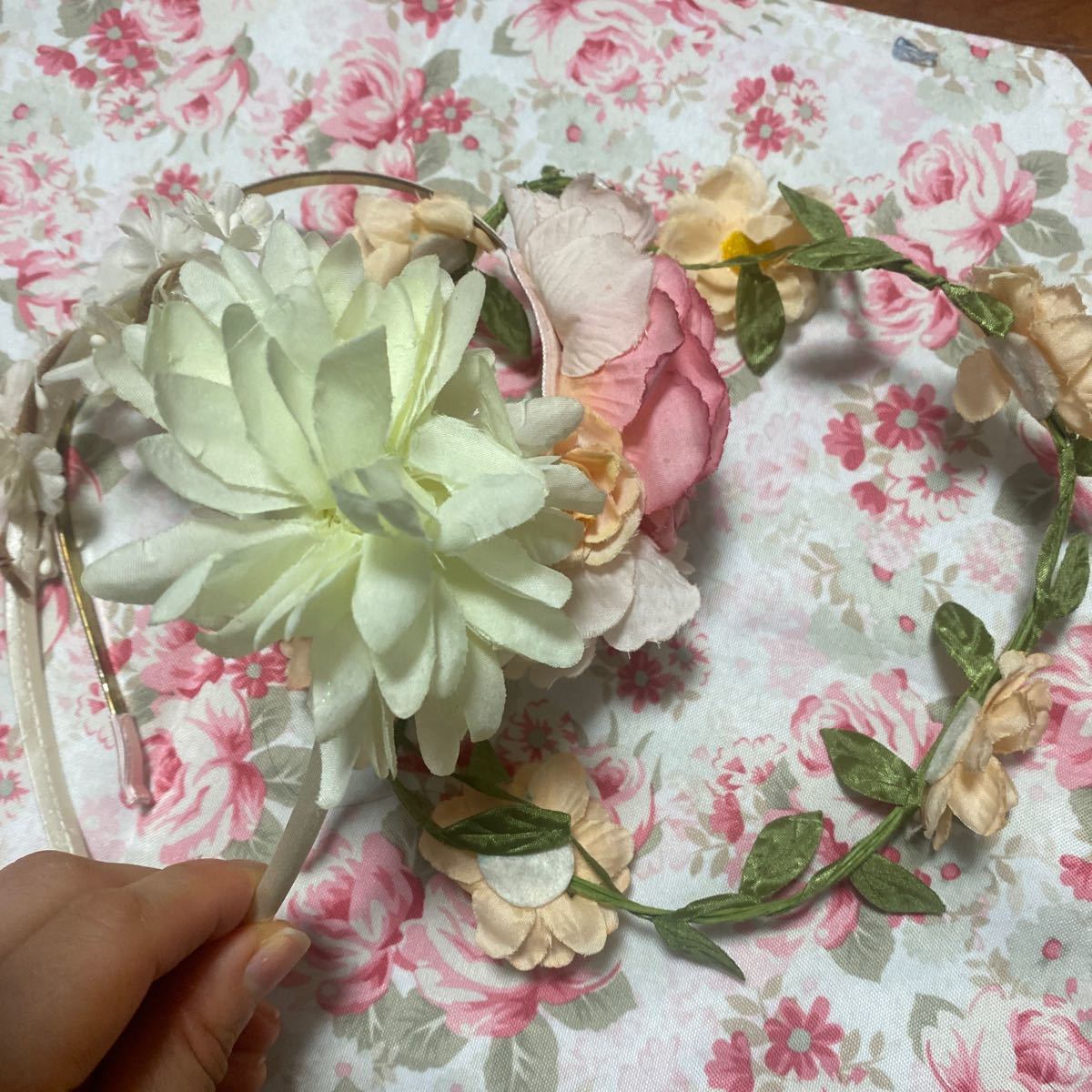 お花カチューシャ2個、花冠セット パーティー 結婚式 二次会 謝恩会 卒業式 お茶会など ヘアアクセサリーセット